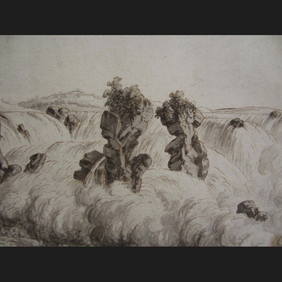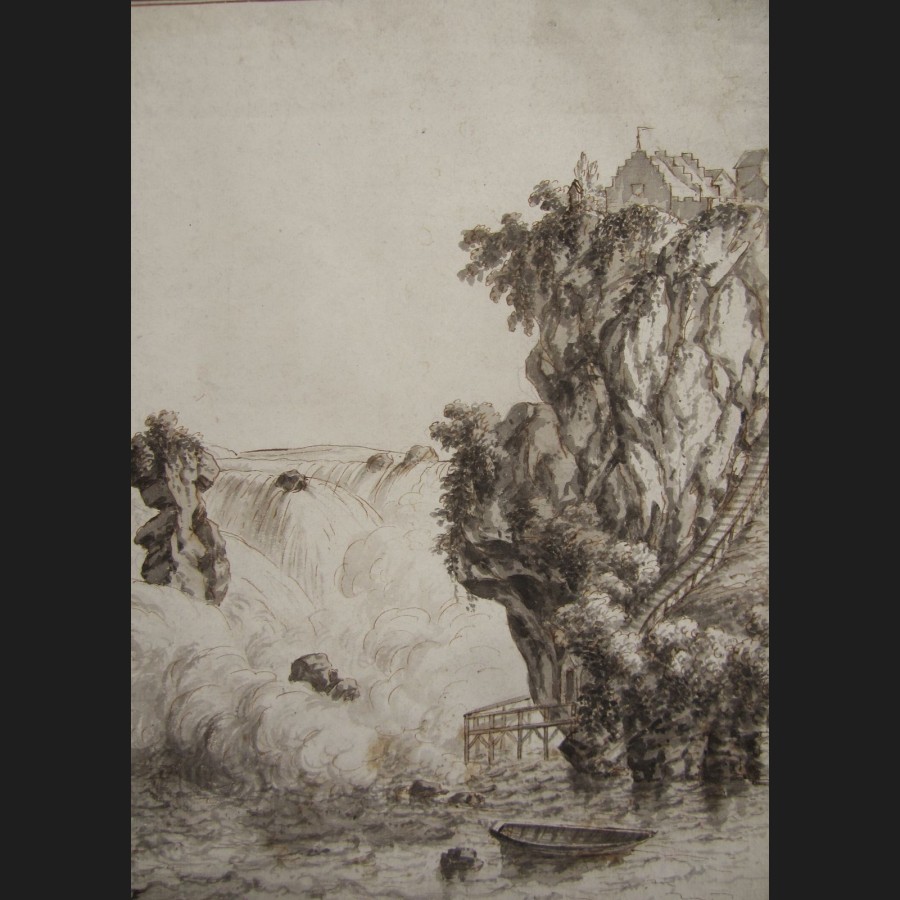 Johann Jakob ASCHMANN, La Chute du Rhin près de Schaffhouse, dessin