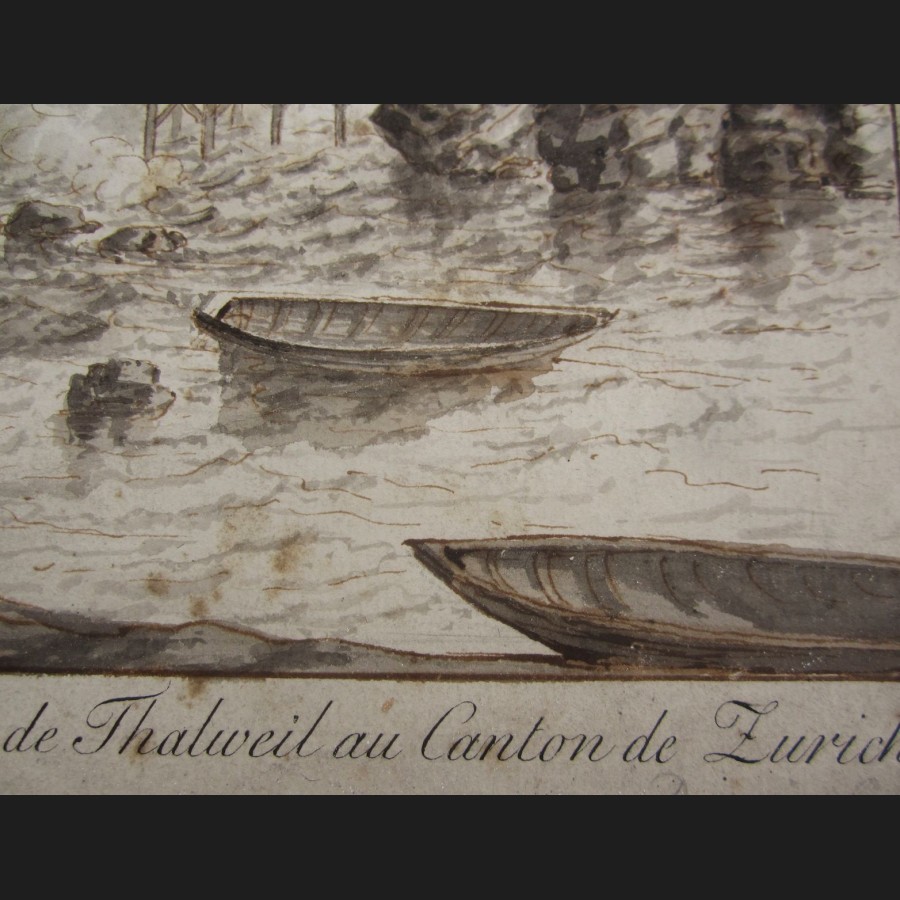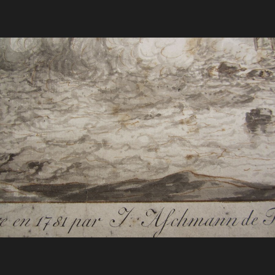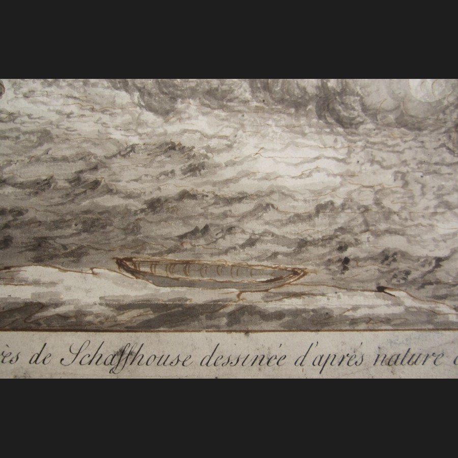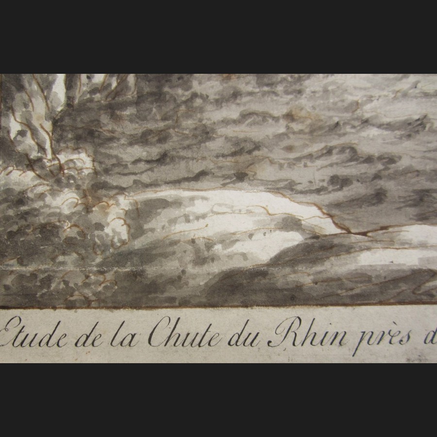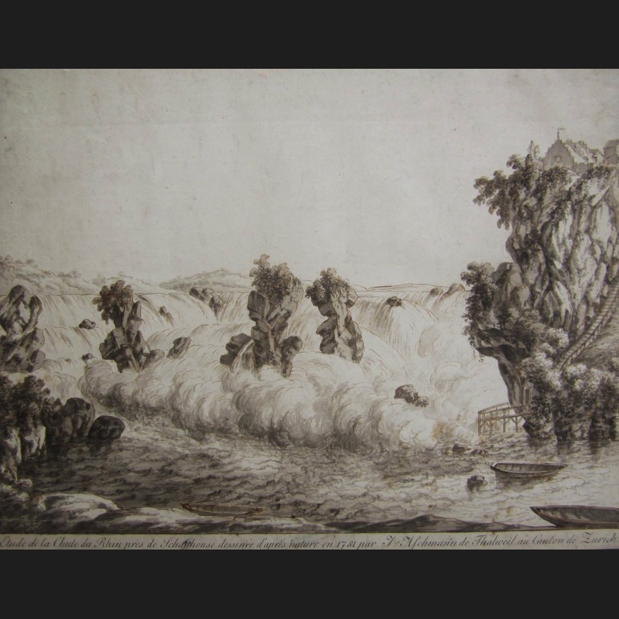 Situé, daté et signé en bas Etude de la Chute du Rhin près de Schaffhouse dessinée d'après nature en 1781 par J. Aschmann de Thalweil au Canton de Zurich