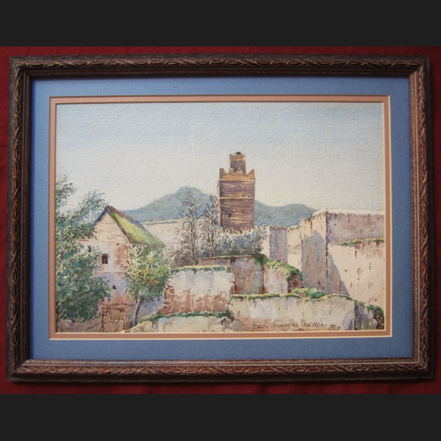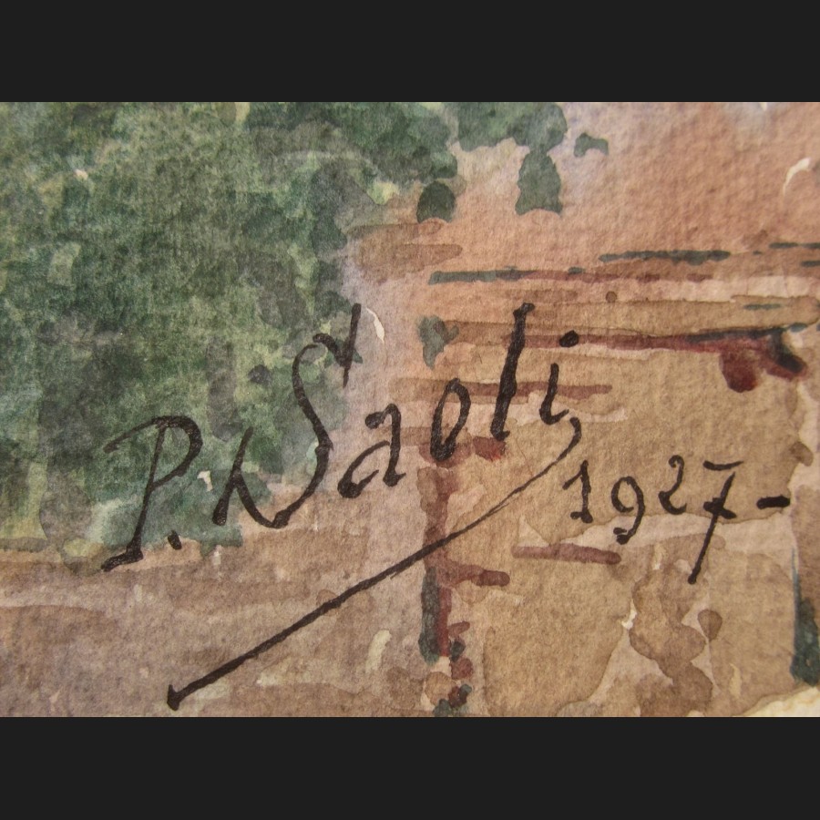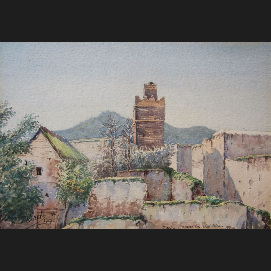 Signé et daté en bas à gauche P. Saoli 1927, situé en bas à droite Taza – Masures vers Sidi Attia