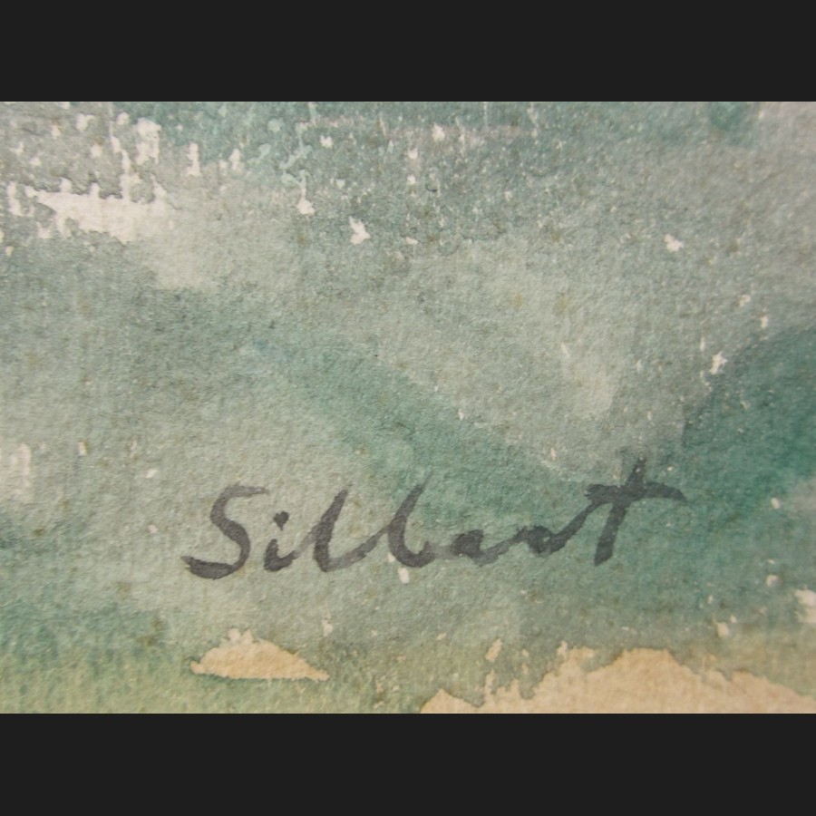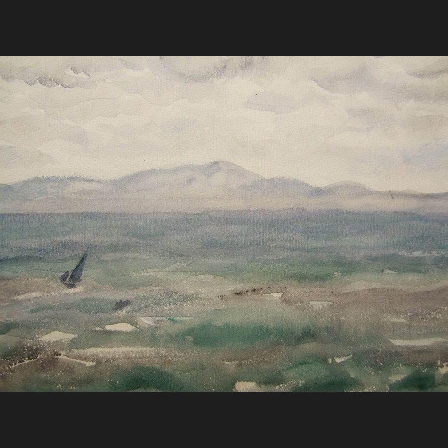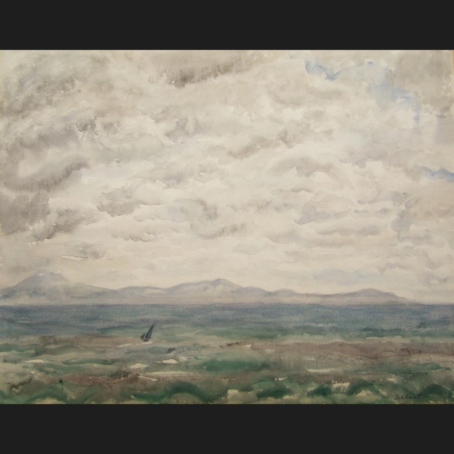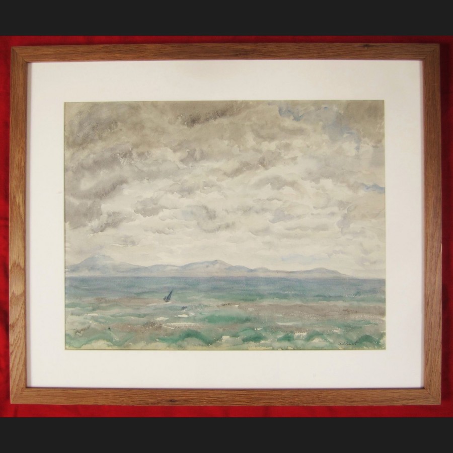 Ben SILBERT, Paysage marin avec un voilier longeant la côte, aquarelle
