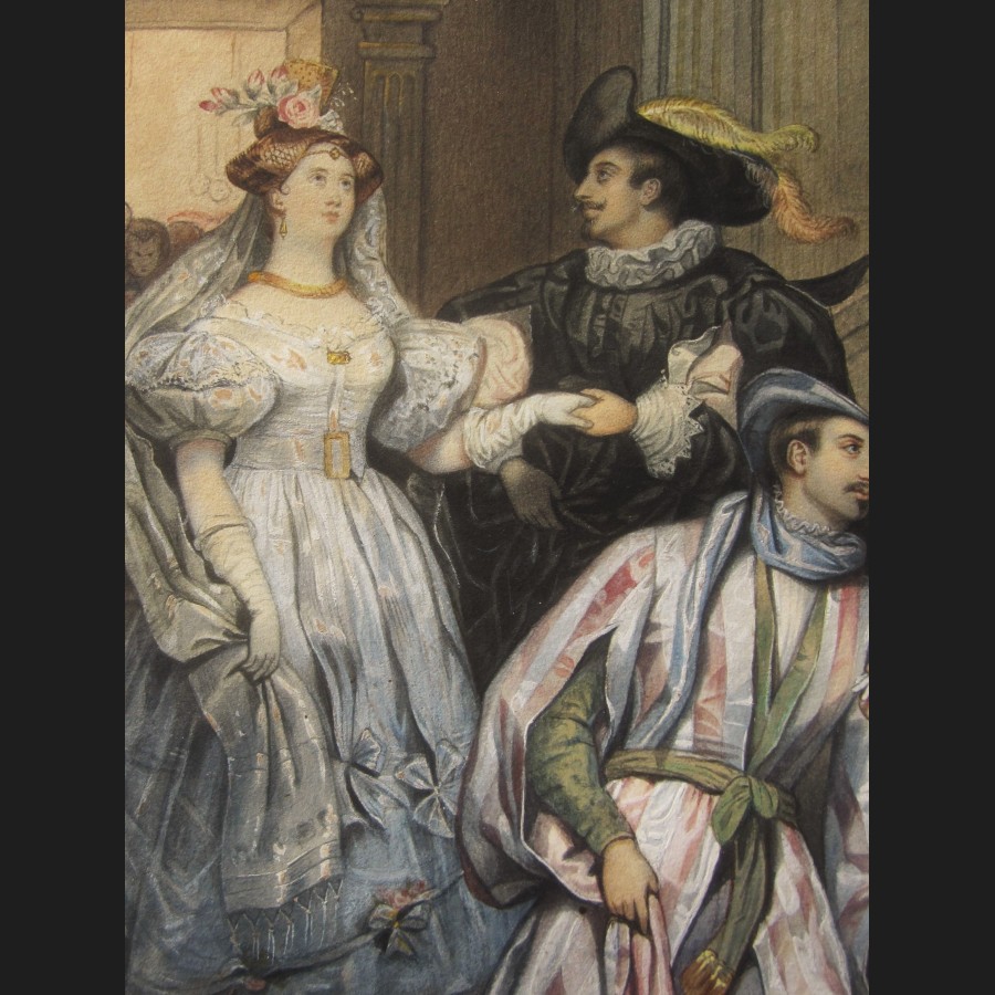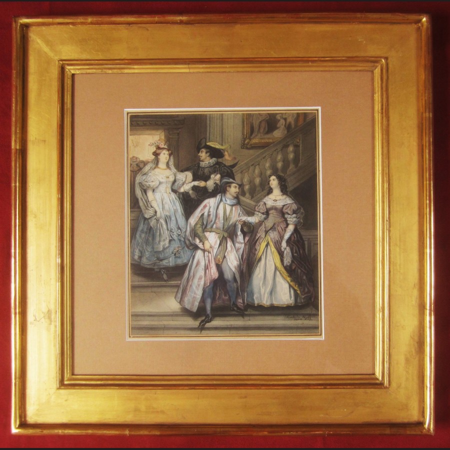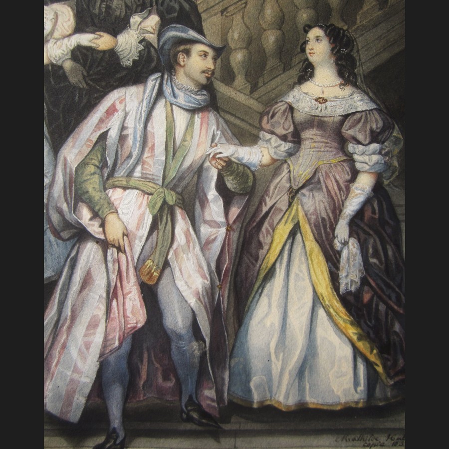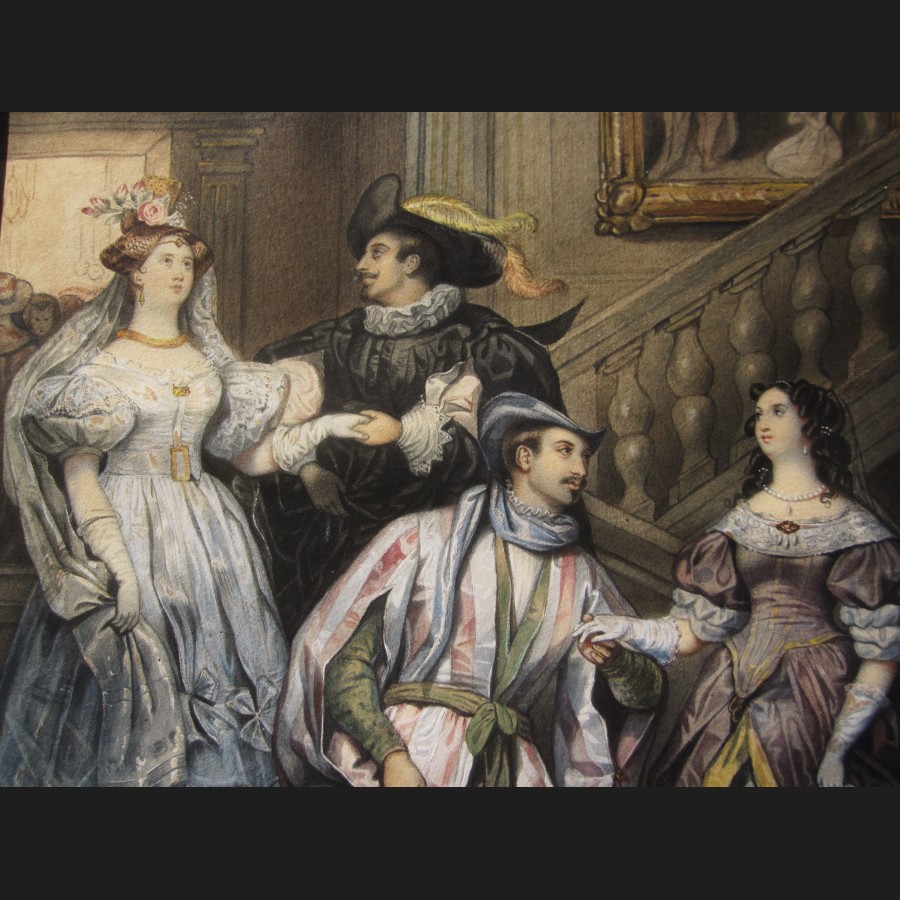 Jeanne Mathilde HERBELIN, née HABERT, Couples d'aristocrates dans l'escalier d'un palais, aquarelle