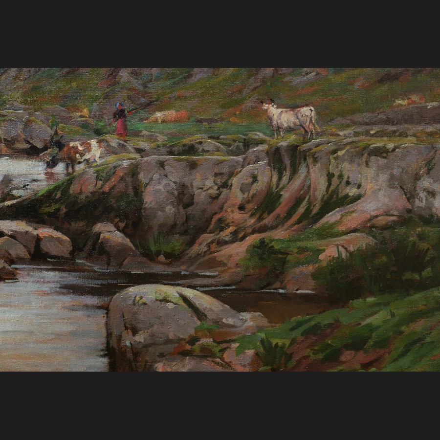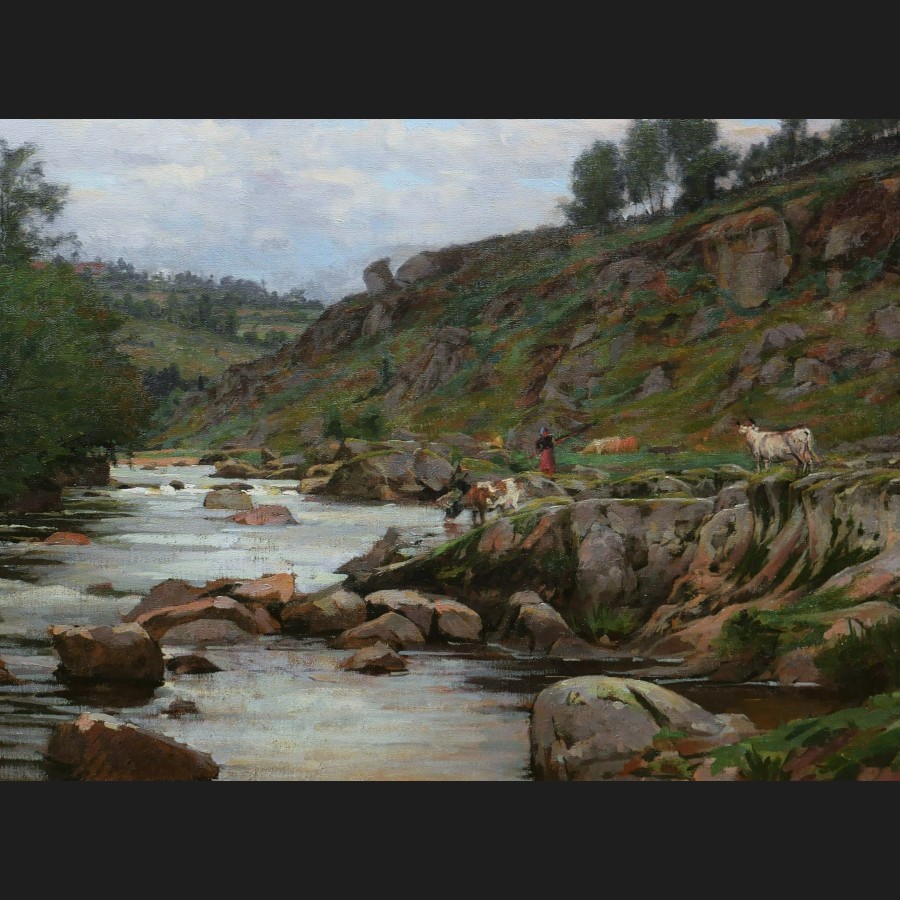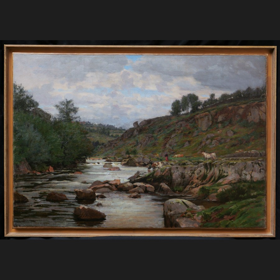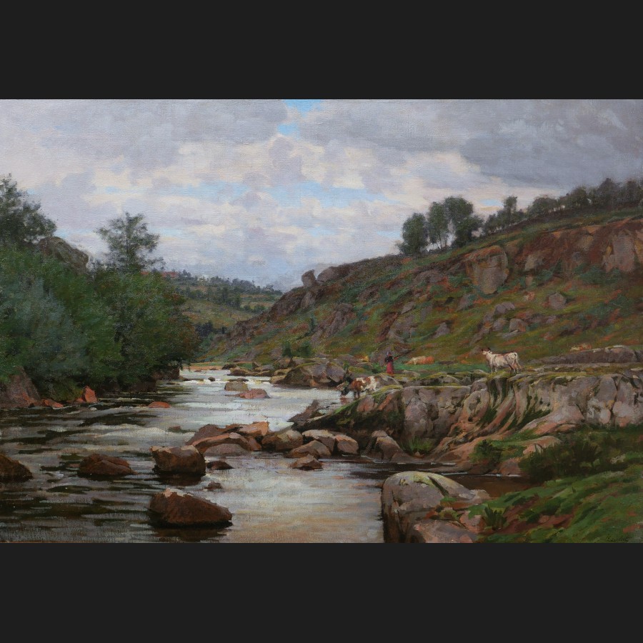Jules ROUSSET, Vaches s'abreuvant à la rivière, tableau