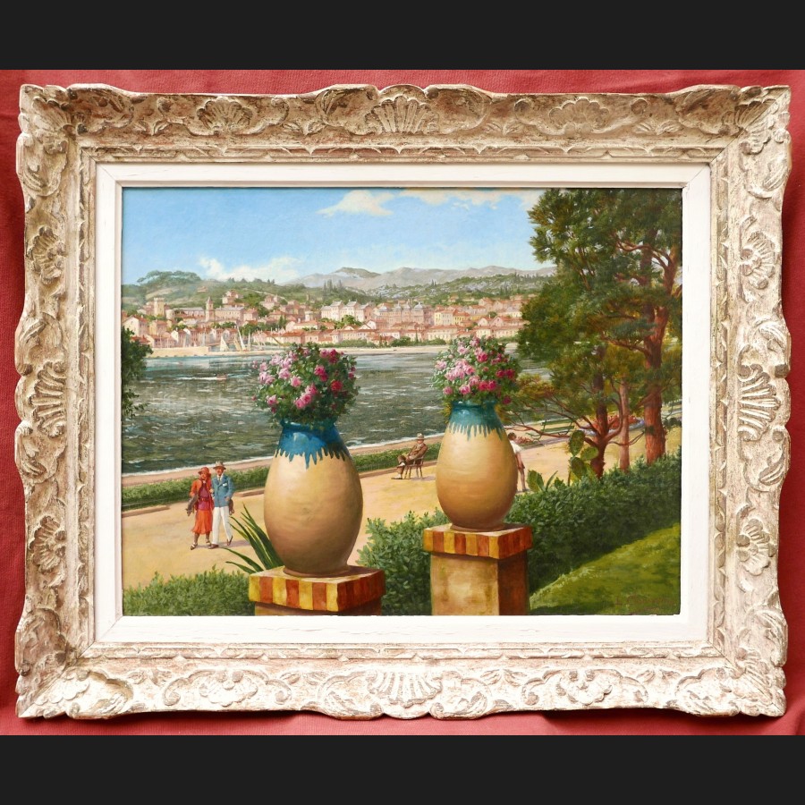 L. CLAPISSON, Promenade sur un port de la Côte d'Azur, tableau
