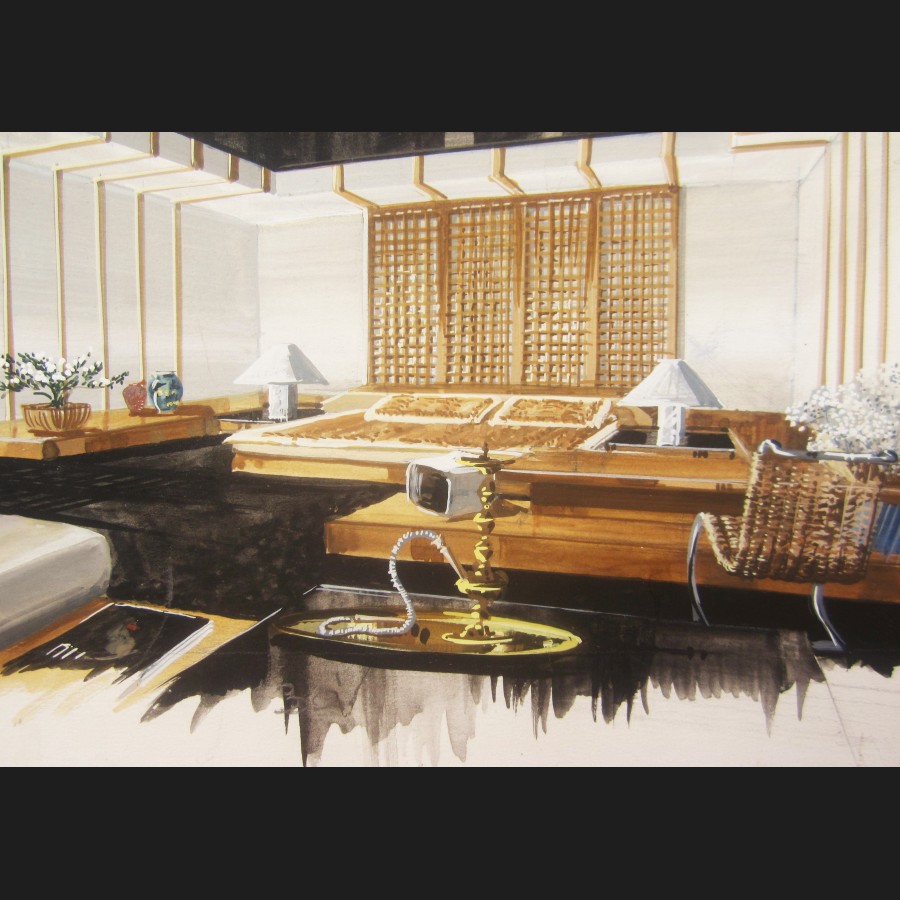 MERCIER Frères, Projets d'intérieur pour la Princesse Noura Bint Abdullah Al Damer de la maison des Saoud, deux gouaches