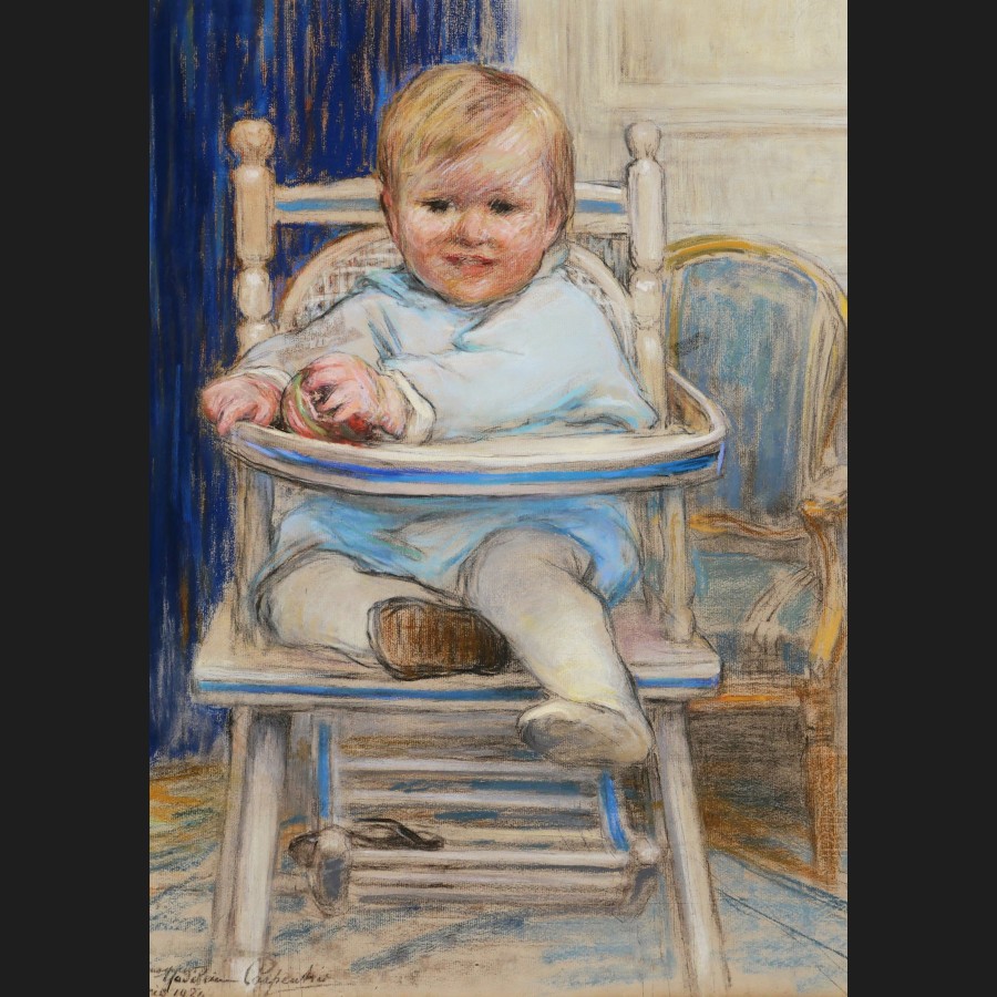 Madeleine CARPENTIER, Jeune enfant dans sa chaise haute, pastel