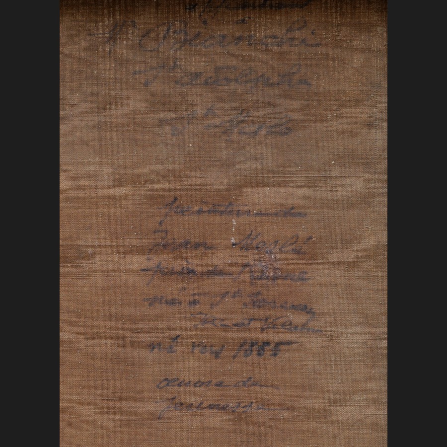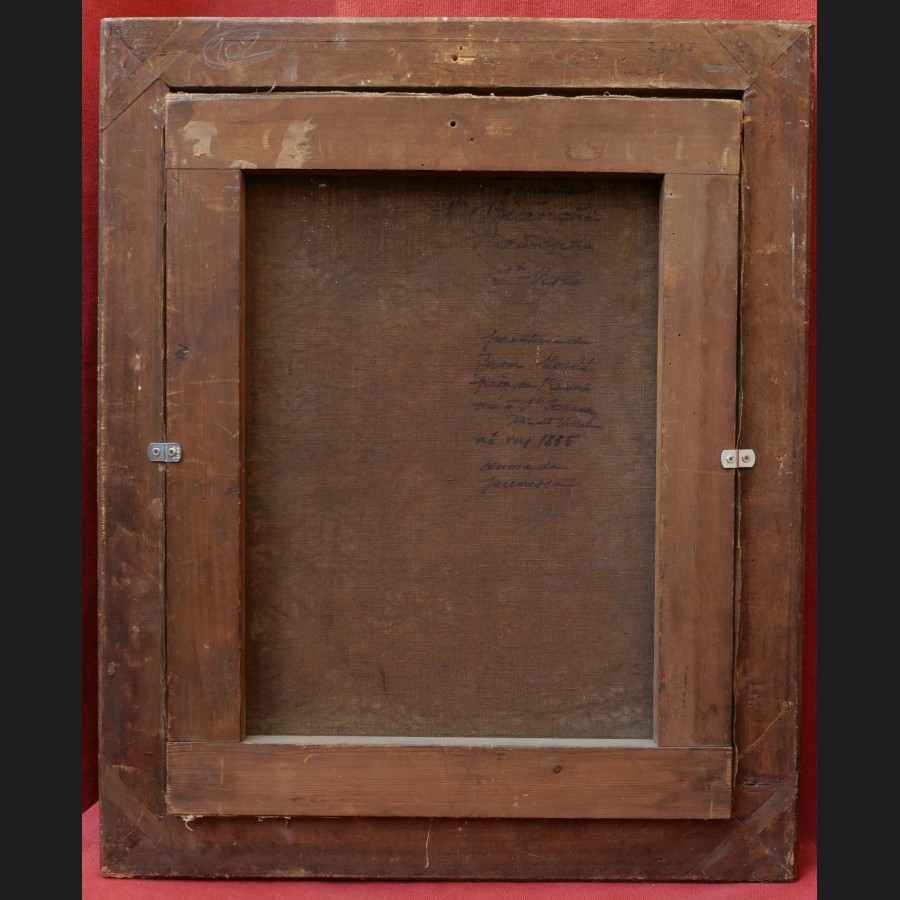 Signé en bas à droite J. Meslé, inscrit à l'encre au revers de la toile affectueusement à Mr Bianchi / St Adolphe / St Malo / peinture de / Jean Meslé / prix de Rome / né à St Servan / va et vient (?) / né vers 1855 / oeuvre de jeunesse