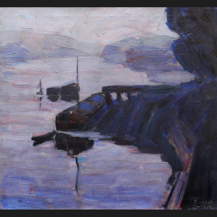 Christodoulos ROIBIS (περίπου στα, 1900 – 1963)Péniches sur la SeineHuile sur toileSigné et daté Roimbis 92150 x 54 cm
