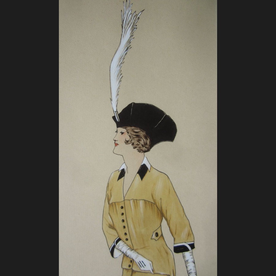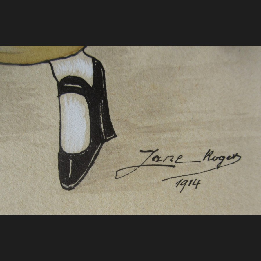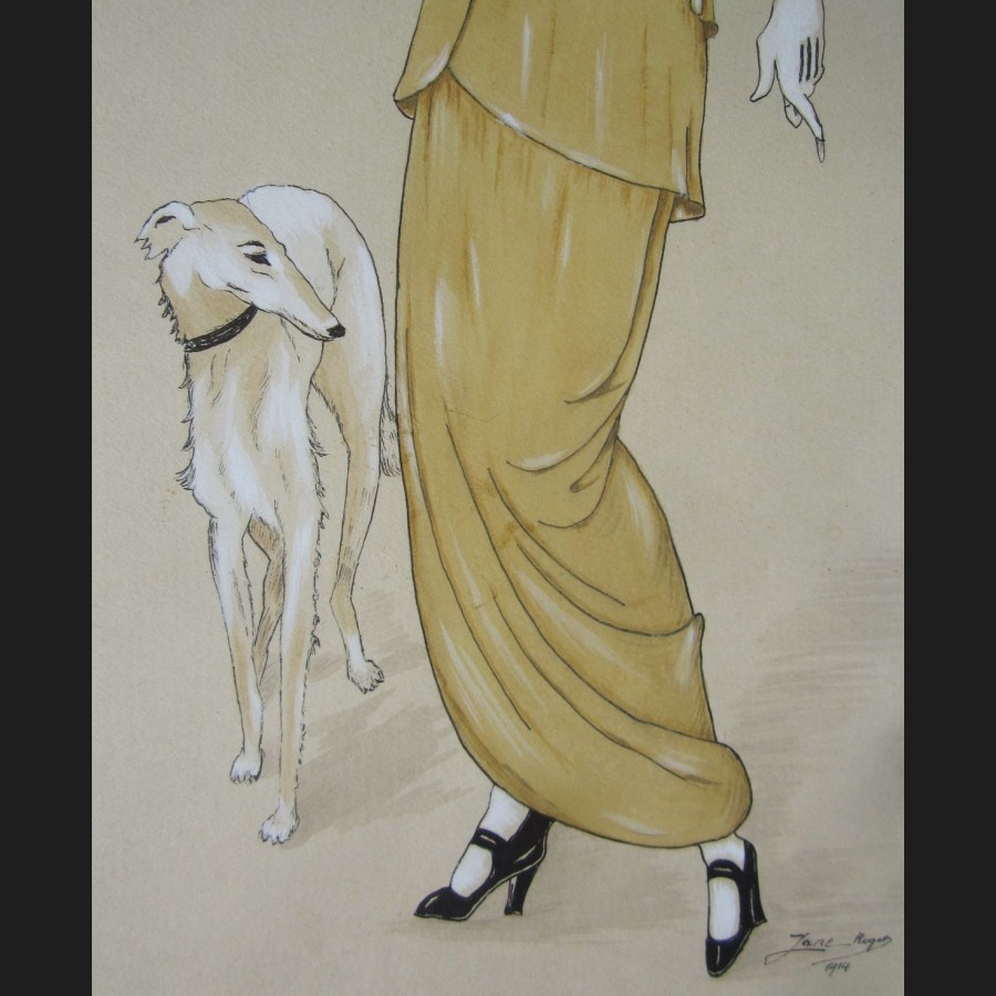 Jane ROGER, Femme en robe jaune avec un lévrier, dessin