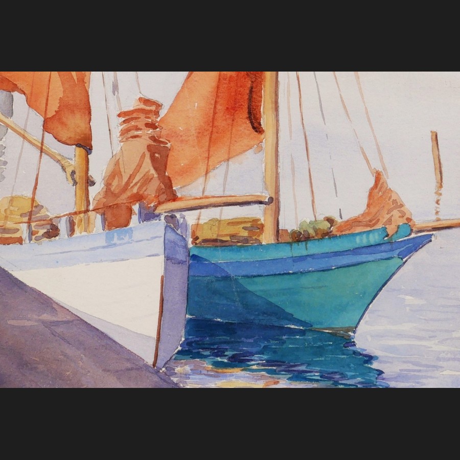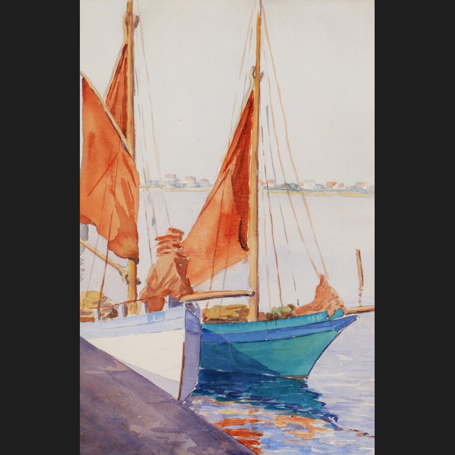 Henry SOLUS, Barques de pêche à Royan, aquarelle