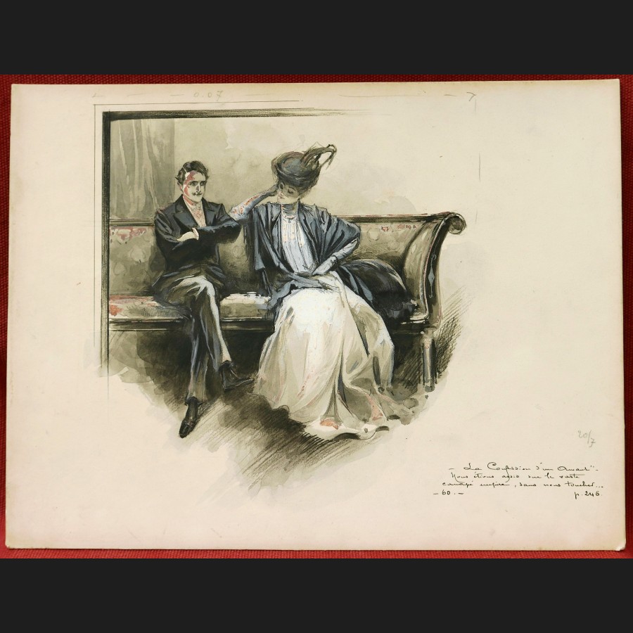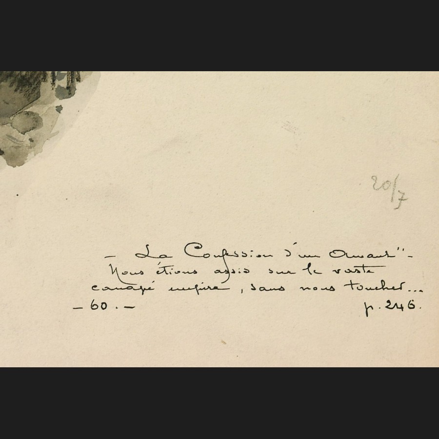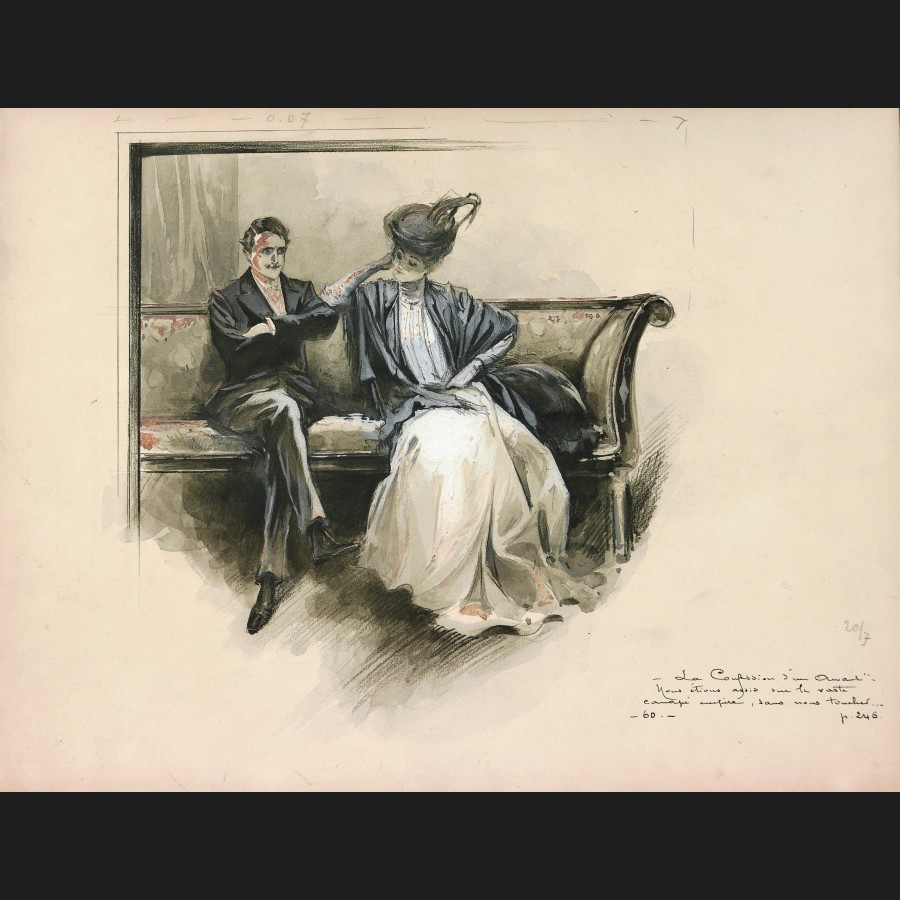 Légendé à l'encre en bas à droite -La Confession d'un amant / Nous étions assis sur le vaste canapé empire, sans nous toucher... / -60 / p.246