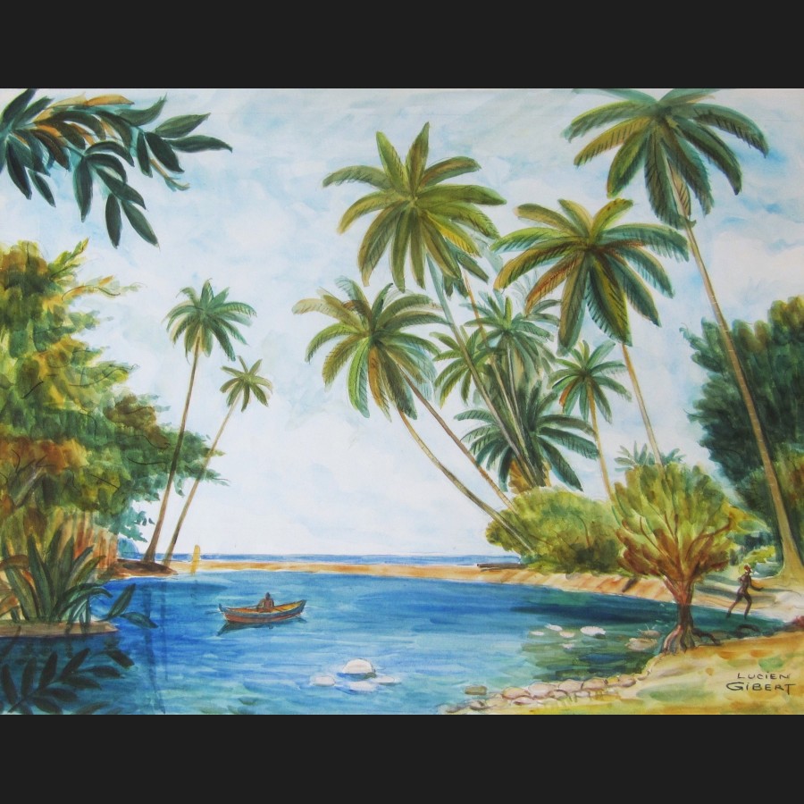 Signé en bas à droite LUCIEN GIBERT, situé au revers Les Antilles / Martinique