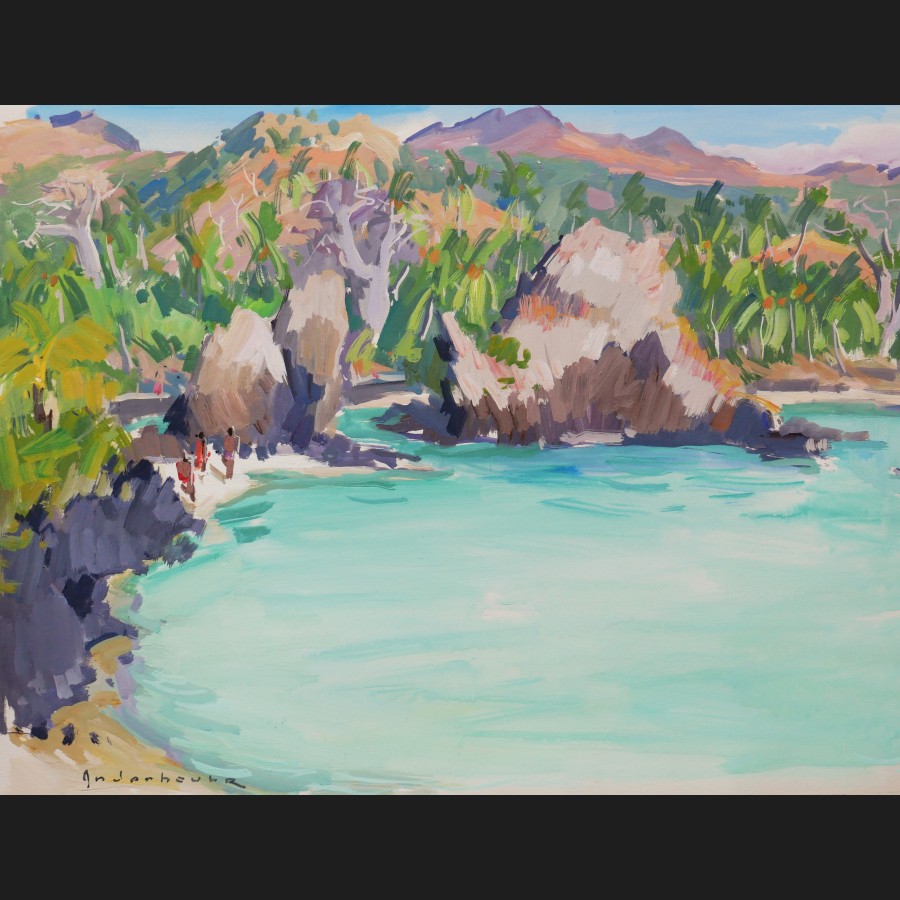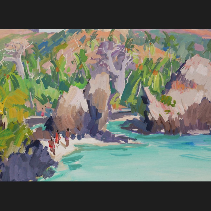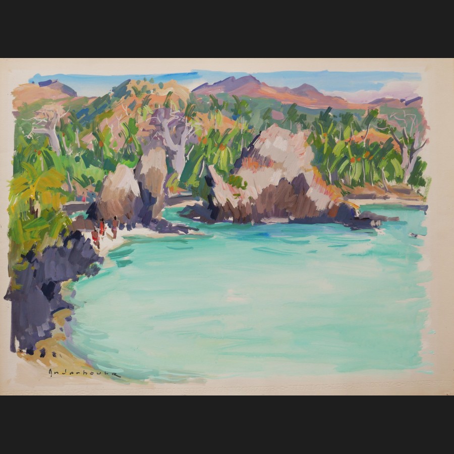 Paul Jean ANDERBOUHR, Paysage côtier, Grande Comore ou Madagascar, gouache