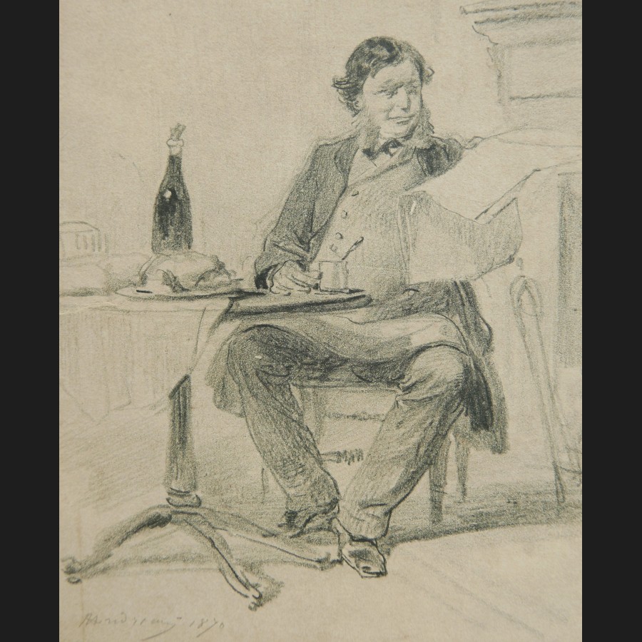 Clément Auguste ANDRIEUX, La lecture du journal, dessin