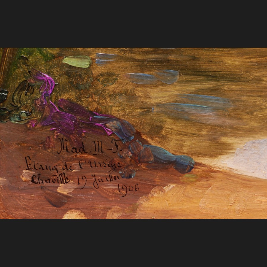 Signé, situé et daté en bas à gauche Mad. M-F / Etang de l'Ursine / Chaville 19 juillet 1906