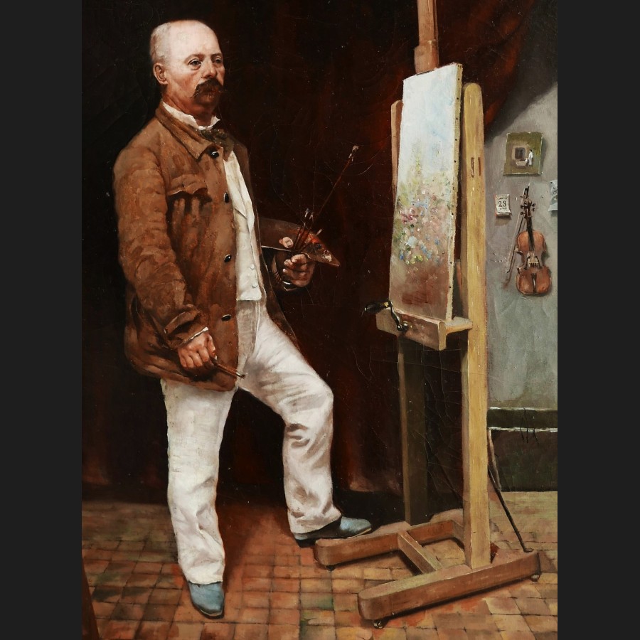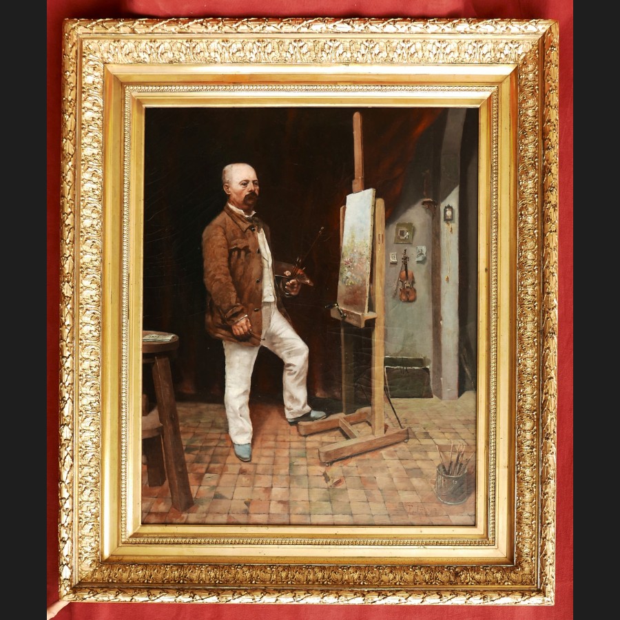 Attribué à Jules Ernest GRÉBY, Autoportrait de l'artiste dans son atelier, tableau