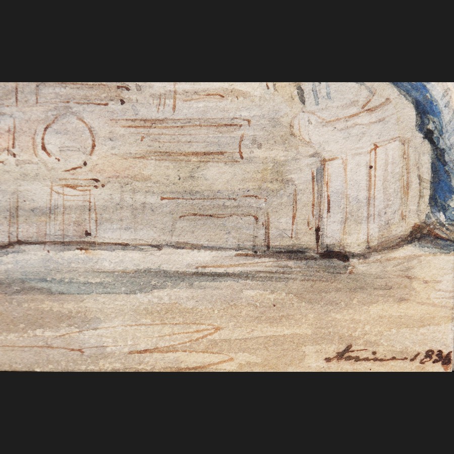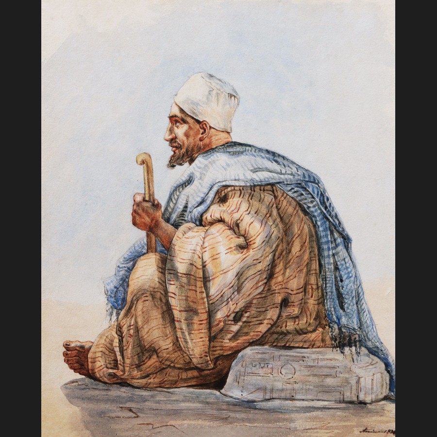 École FRANÇAISE ou ITALIENNE, 1836Oriental assisPlume, pinceau et aquarelleSitué et daté en bas à droite torino (?) 183621,5 x 18 cm