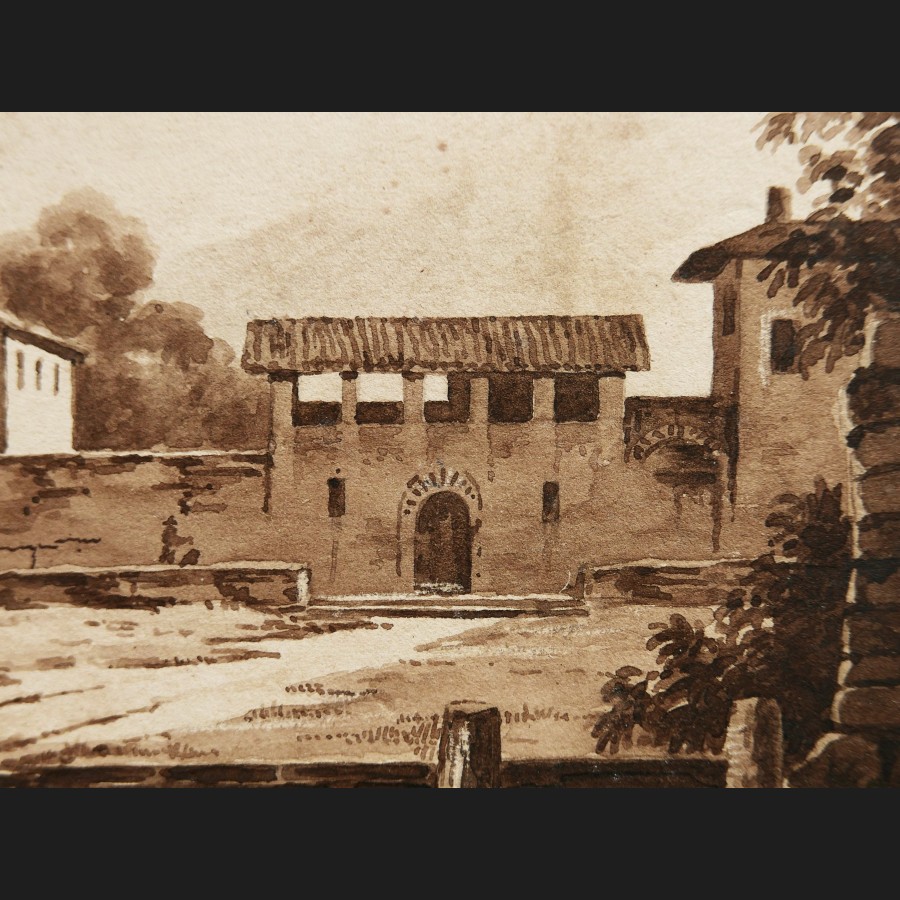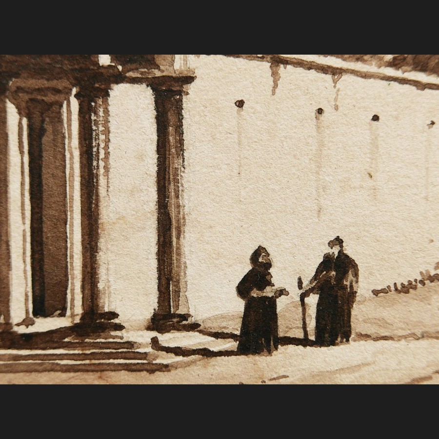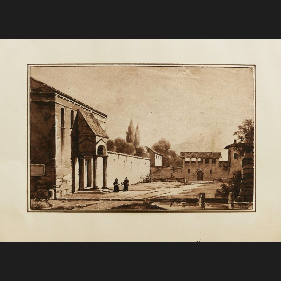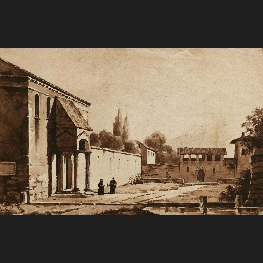 Attribué à Constantin d'Aix, Deux moines dans le jardin d'une abbaye, dessin