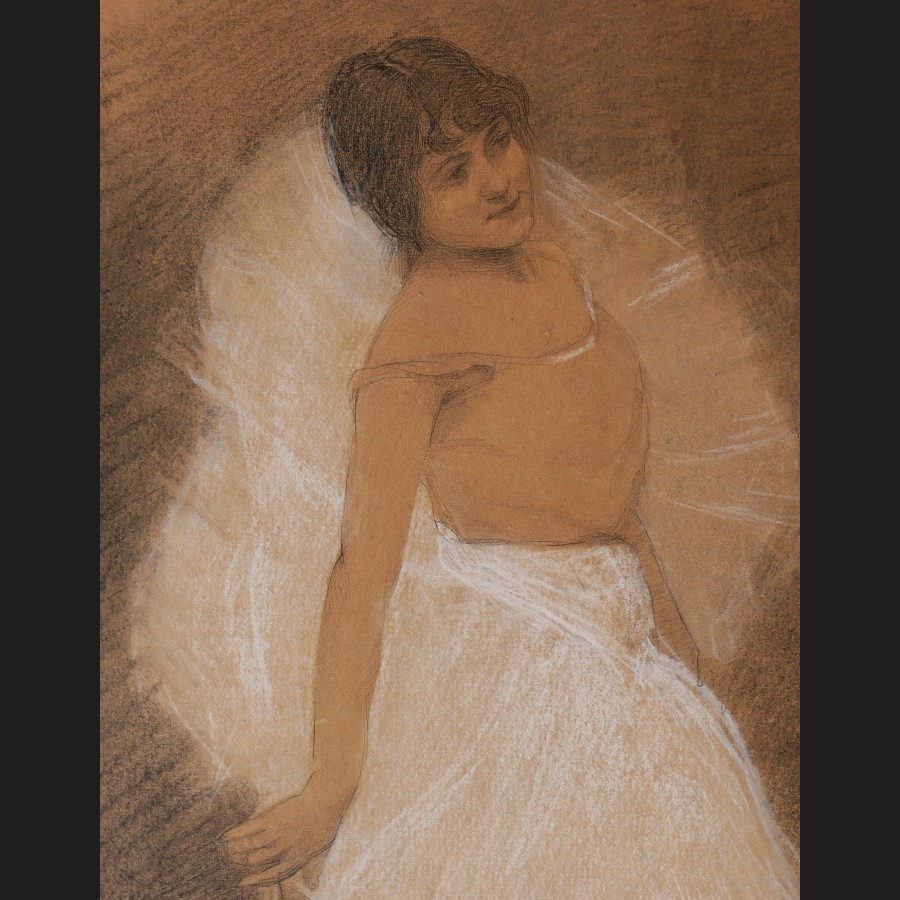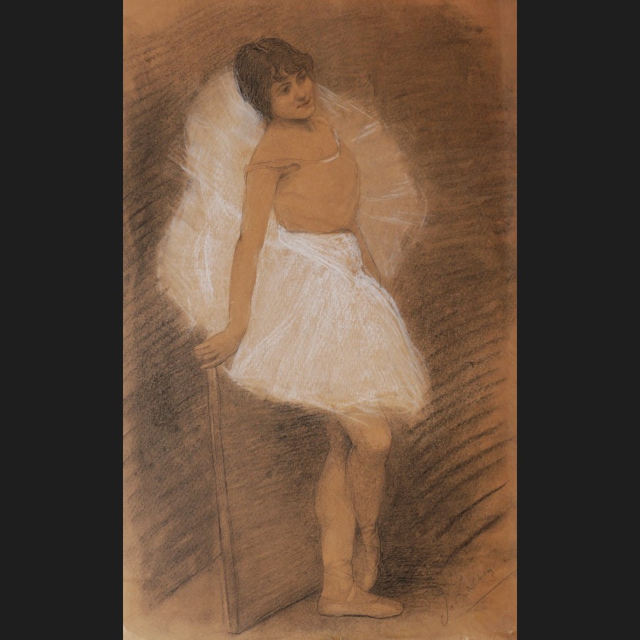 Jesús Maria de LAS CASAS (Caracas, 1853 – Caracas, 1926)DanseuseCrayon et rehauts de craie blanche sur papierSigné en bas à droite J. LasCasas50 x 32,5 cm