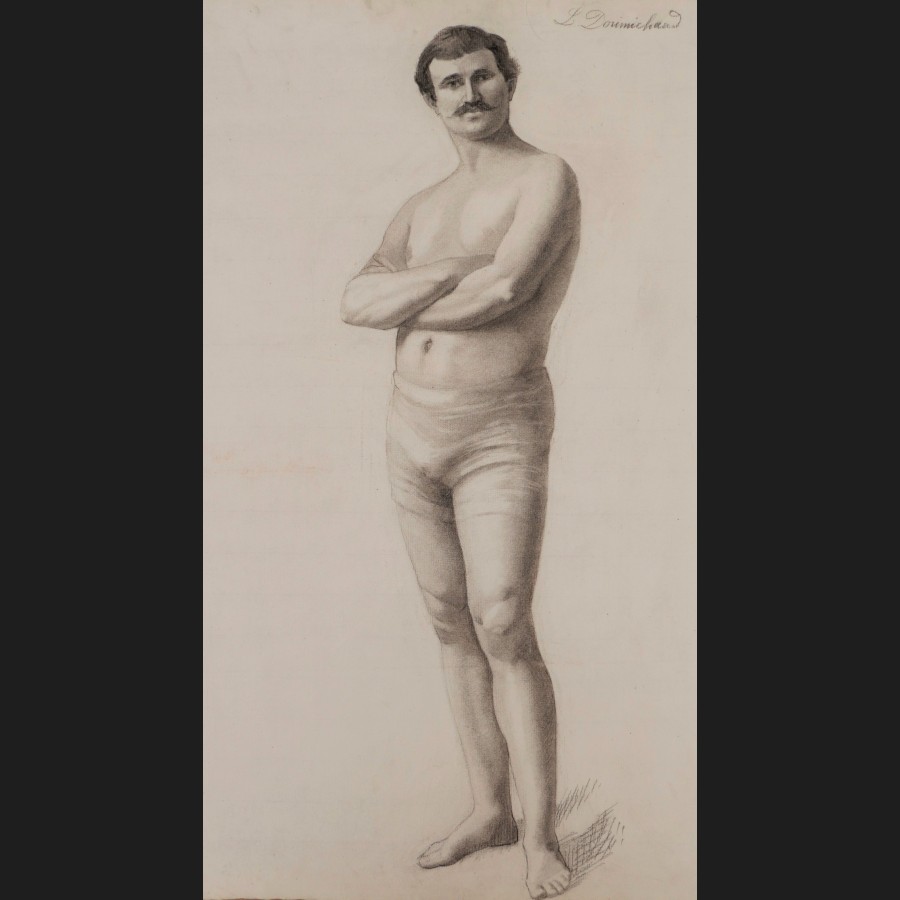 Laetitia DOUMICHAUD de la CHASSAGNE-GROSSE, Académie d'homme moustachu debout, dessin