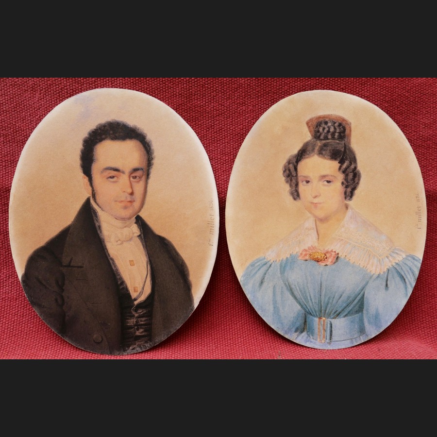 Frédéric MILLET, Portraits d'un homme et de sa femme, paire de miniatures