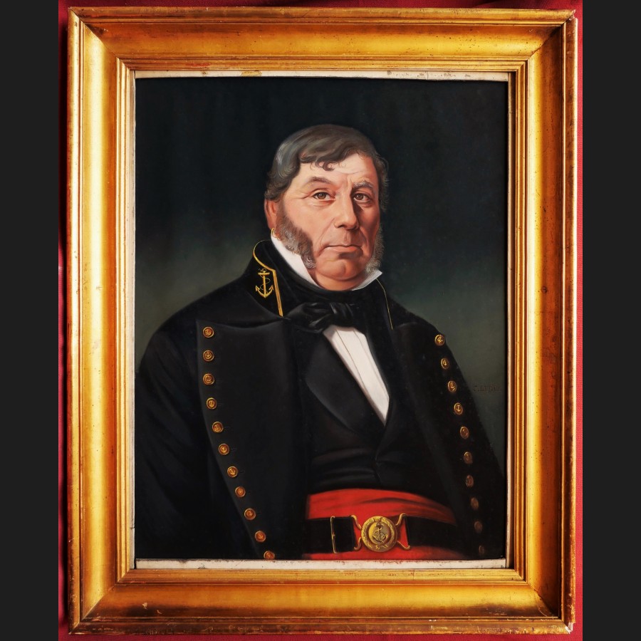 Signé au milieu à droite J. LEBEL, porte au revers une étiquette inscrite Né à Compiègne en 1789 / Mort à Compiègne en 1854