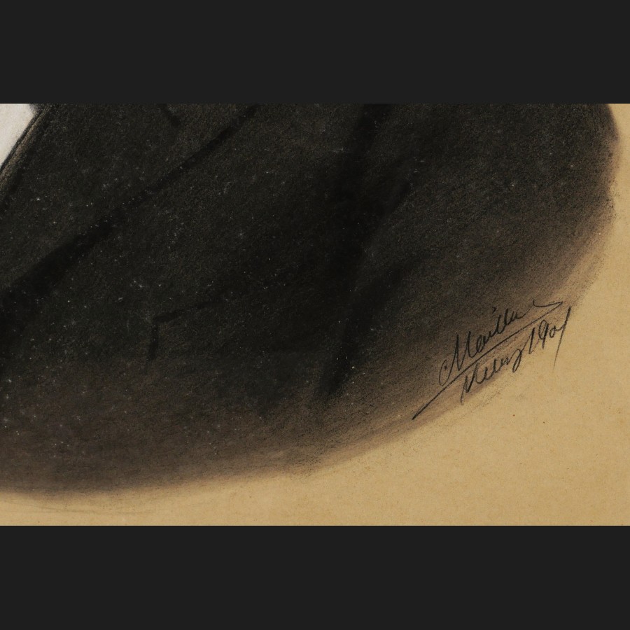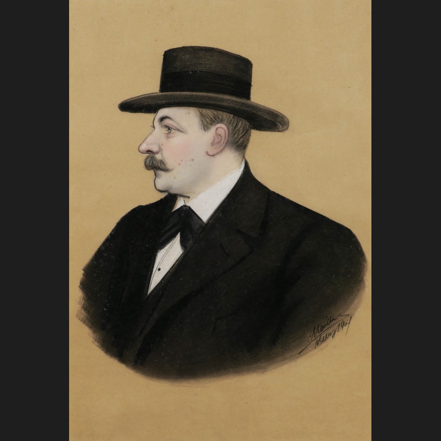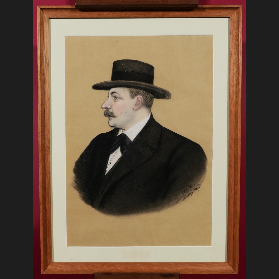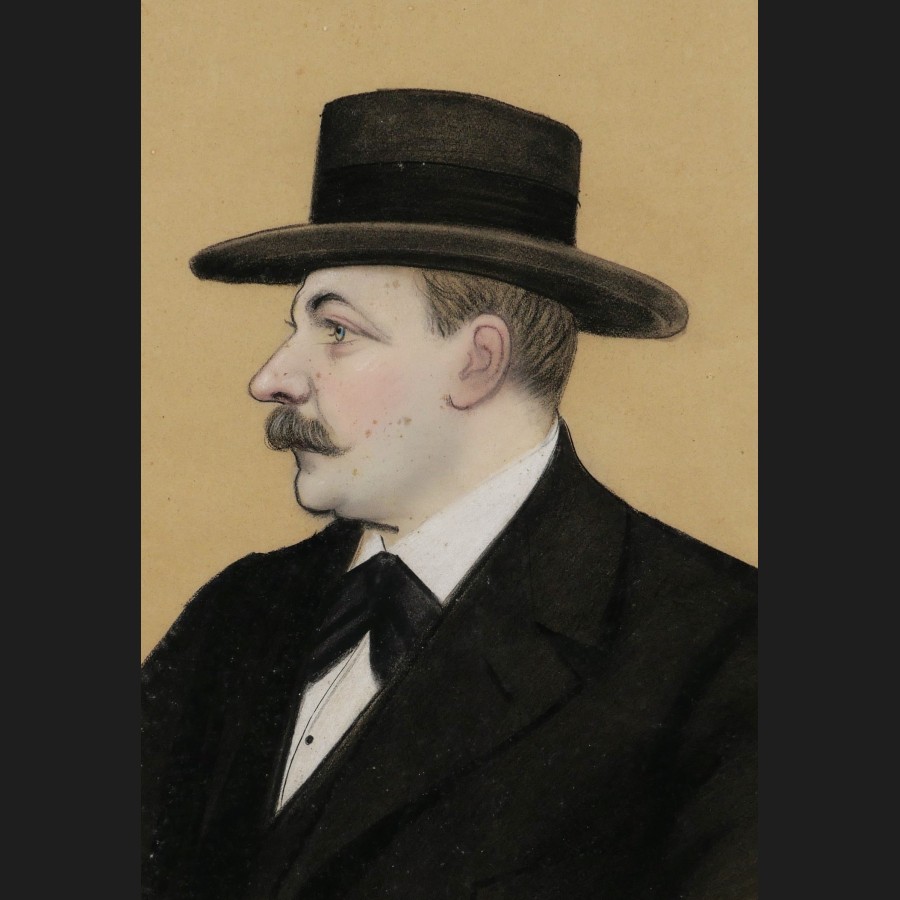 École FRANÇAISE circa 1900, Portrait d'homme au chapeau et à la moustache de profil, dessin