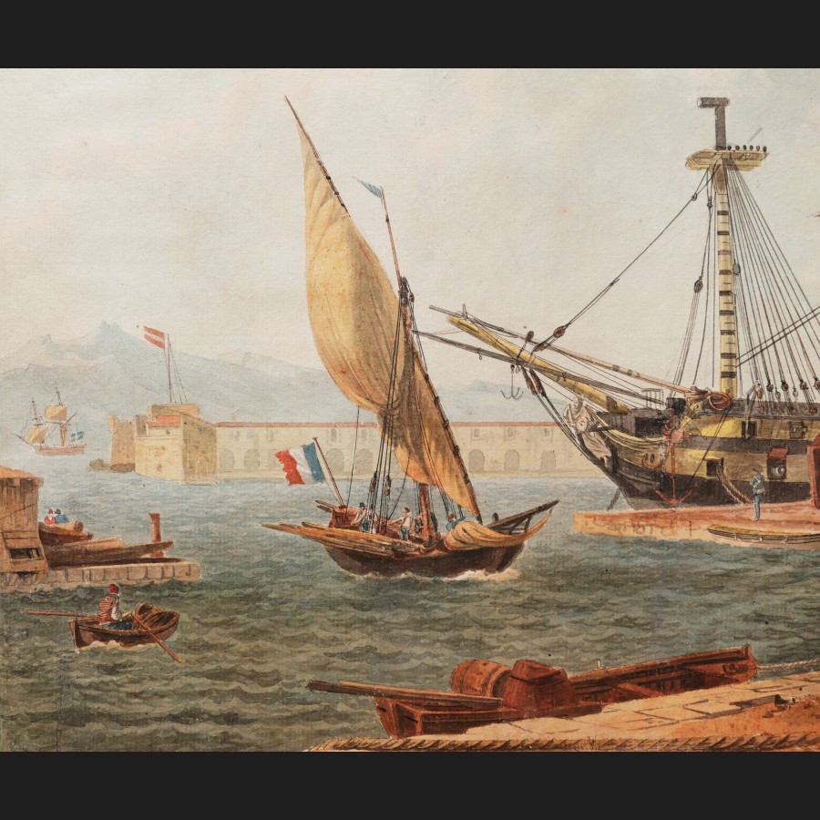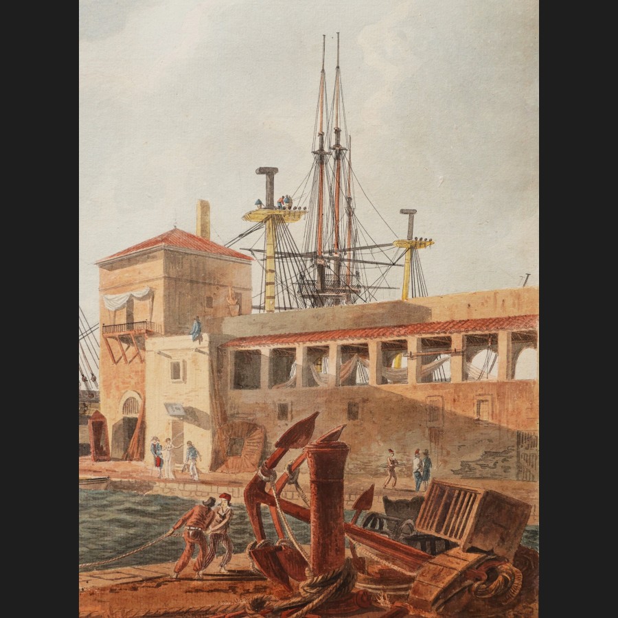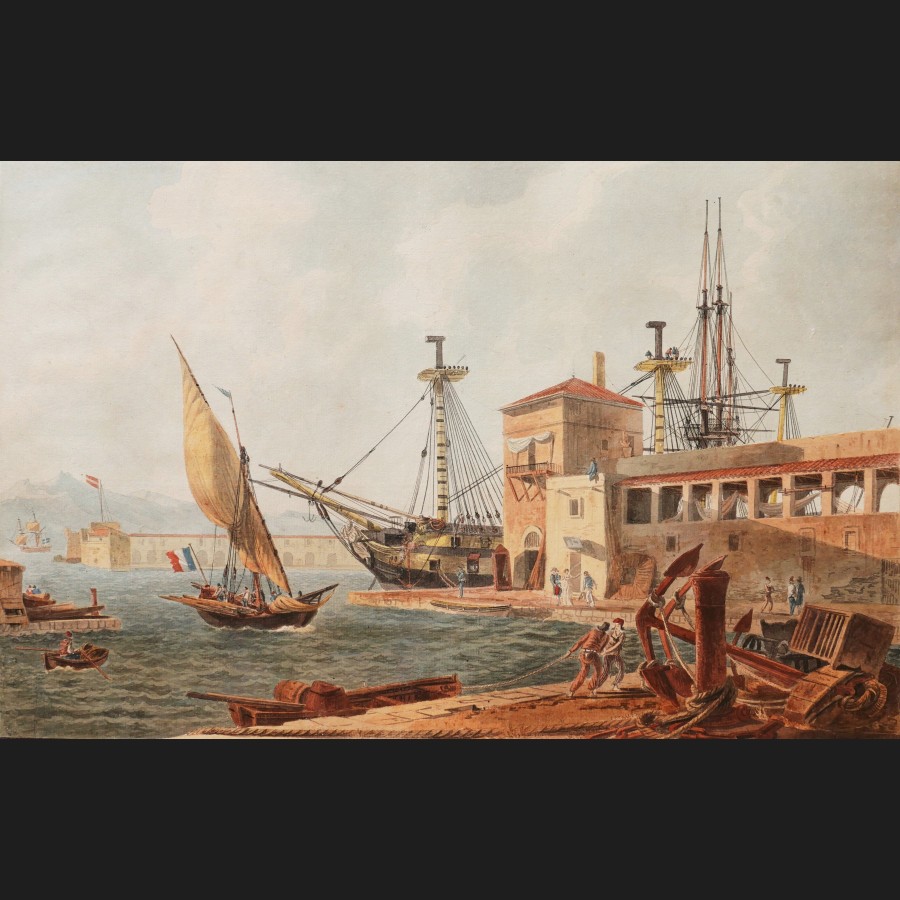 Situé, signé et daté en bas droite Dessiné à Toulon, par J. Baugean, en 1802.