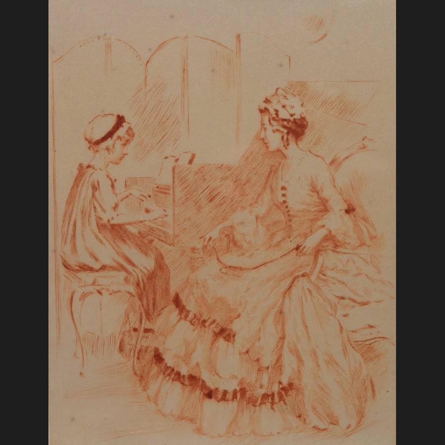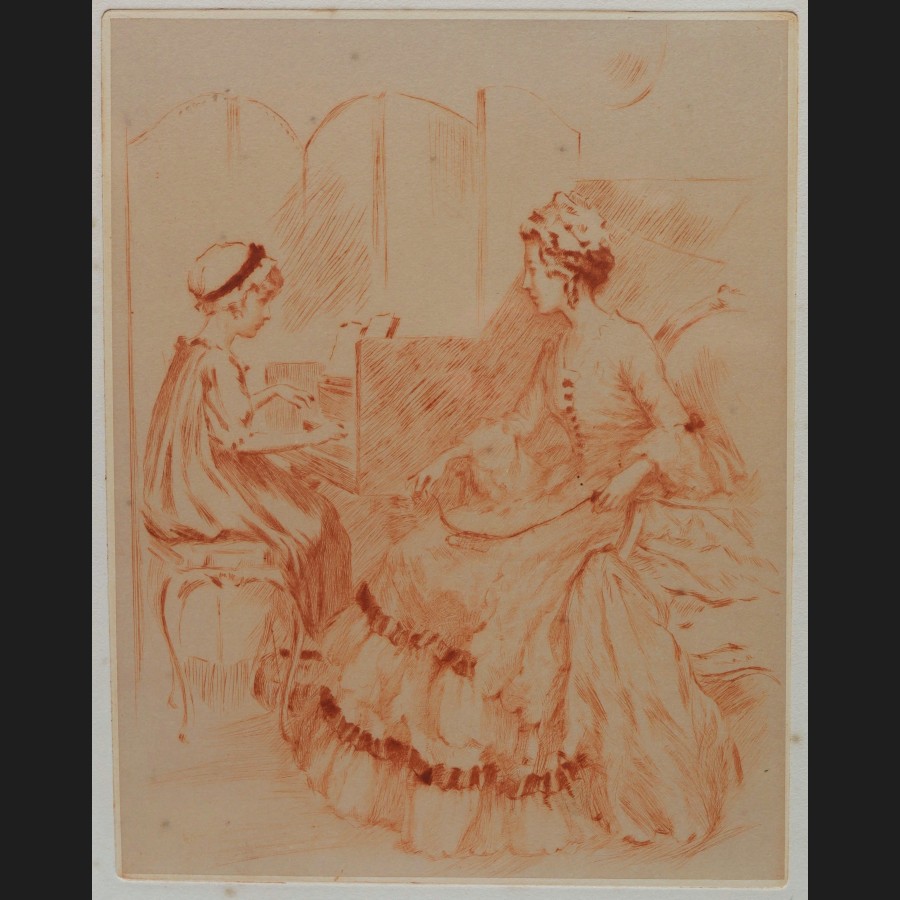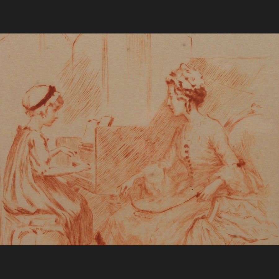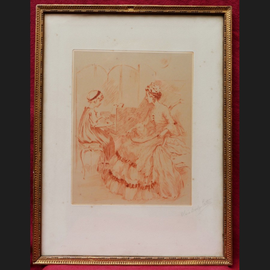 Elsie DODGE PATTEE, Jeune fille au clavecin en compagnie de sa mère, dessin