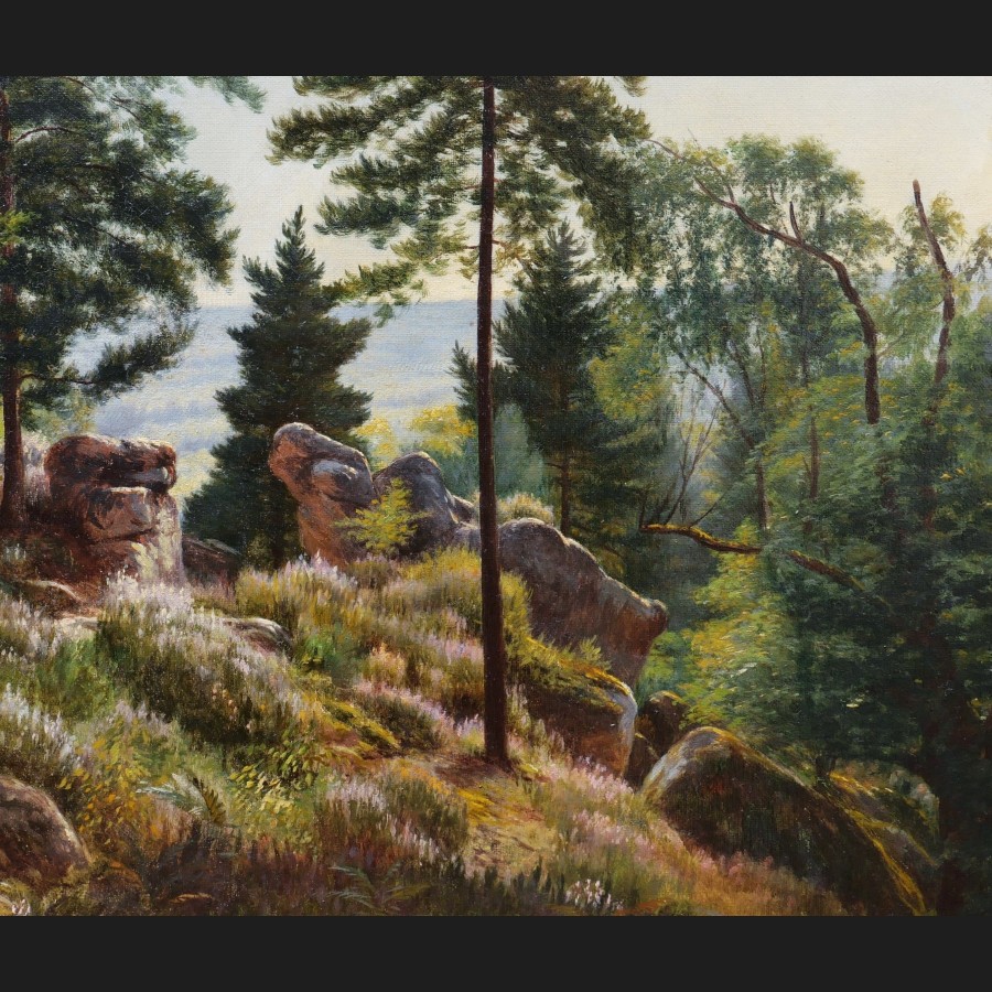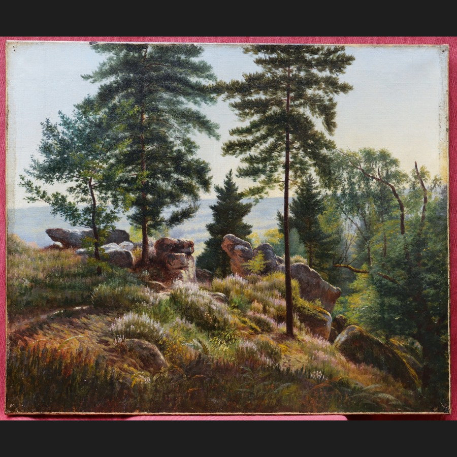 École FRANÇAISE fin XIXème sièclePaysage dans la Forêt de FontainebleauHuile sur toile46 x 55,5 cm