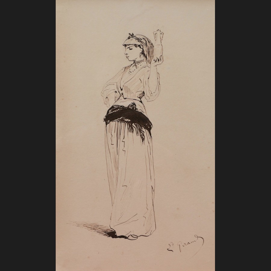 Pierre François Eugène GIRAUD, Femme orientale portant une amphore, dessin