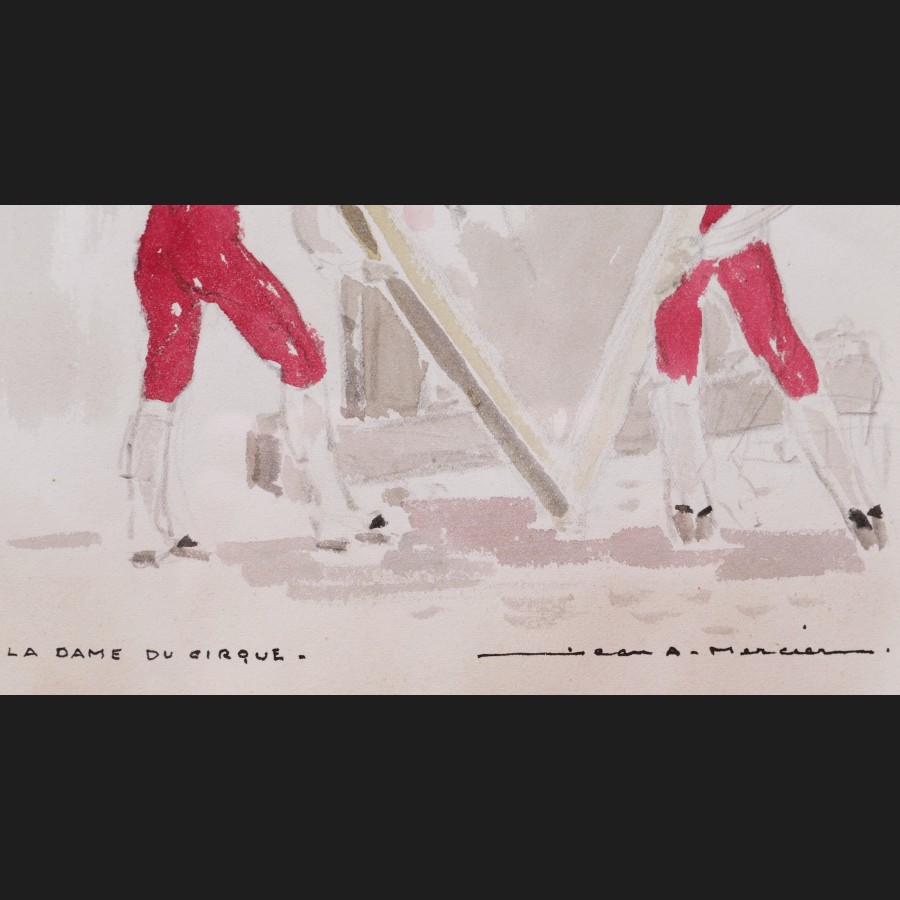 Titré en bas à gauche LA DAME DU CIRQUE, signé en bas à droite Jean A. Mercier