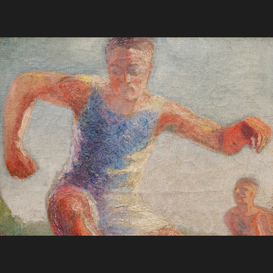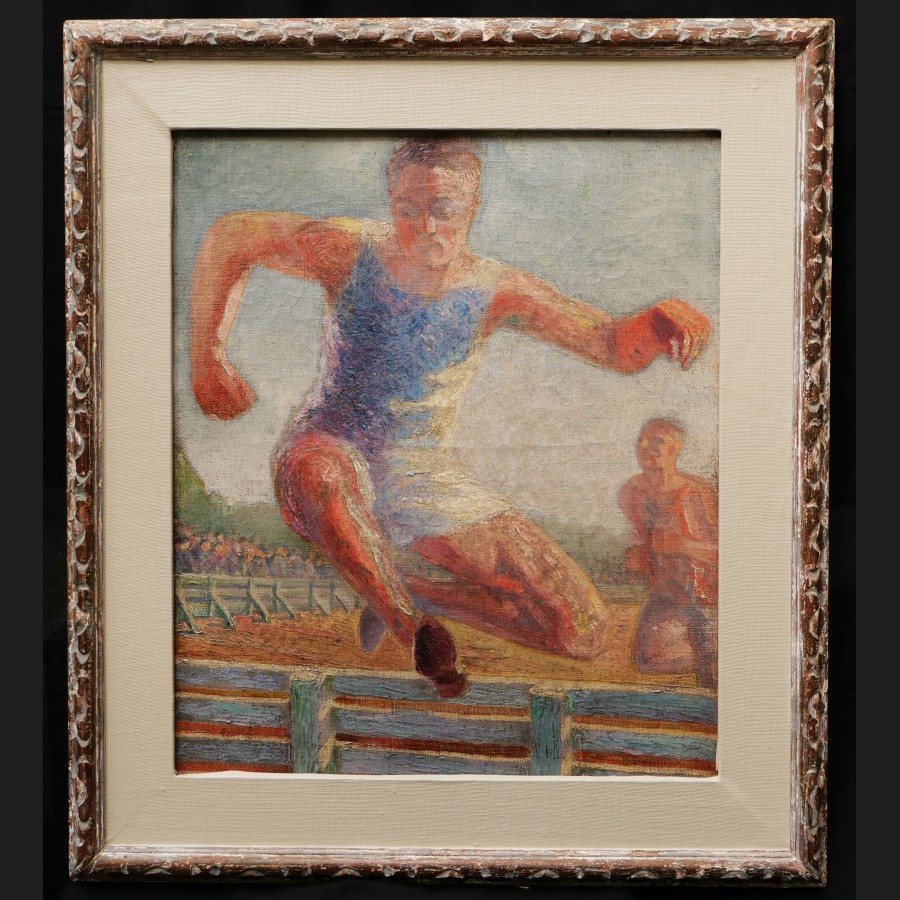 École FRANÇAISE début XXème siècle, Athlètes pratiquant une course de haies, tableau