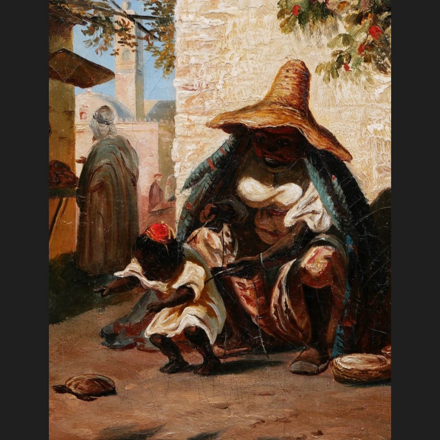 Juliette G., Femme du Maroc et son enfant jouant avec une tortue, tableau
