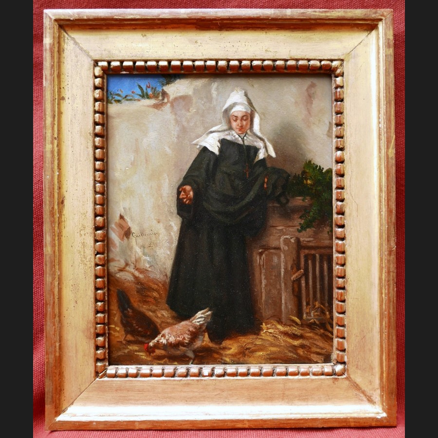 Alexandre Marie GUILLEMIN, Religieuse nourrissant les poules, tableau