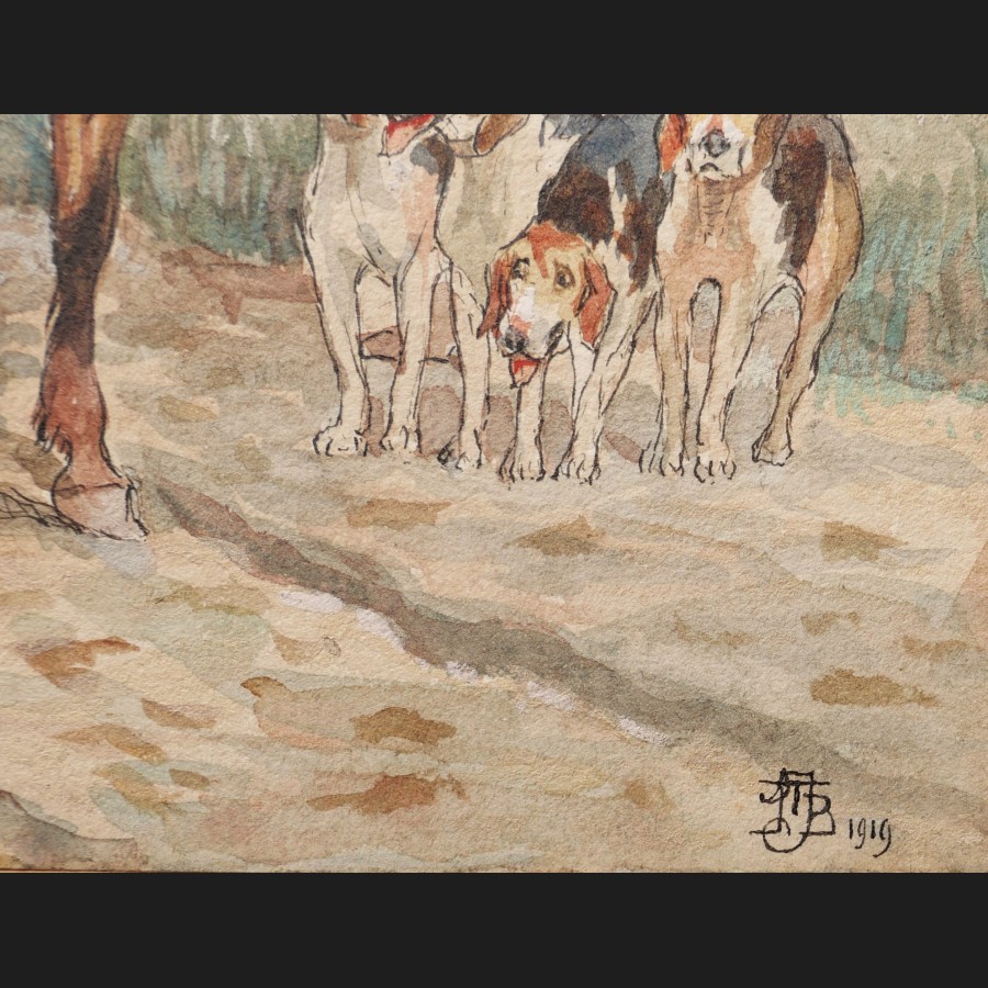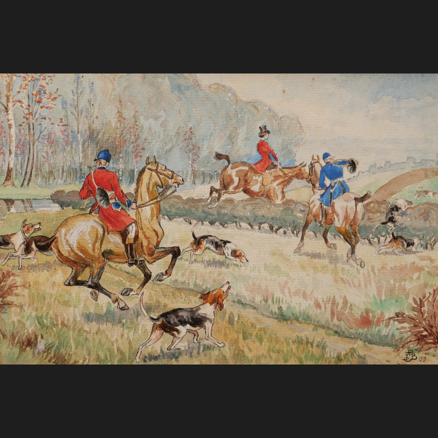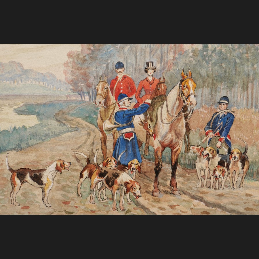 Attribué à Jean Achille Théodore BRAIL, Scènes de chasse à courre, paire d'aquarelles