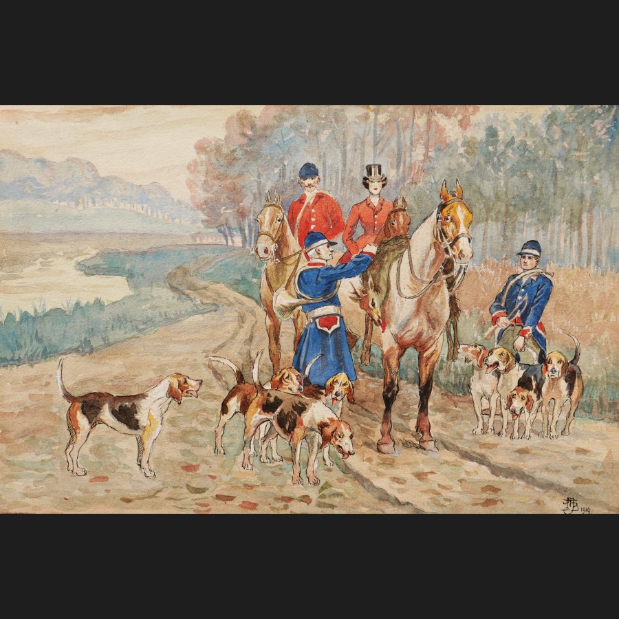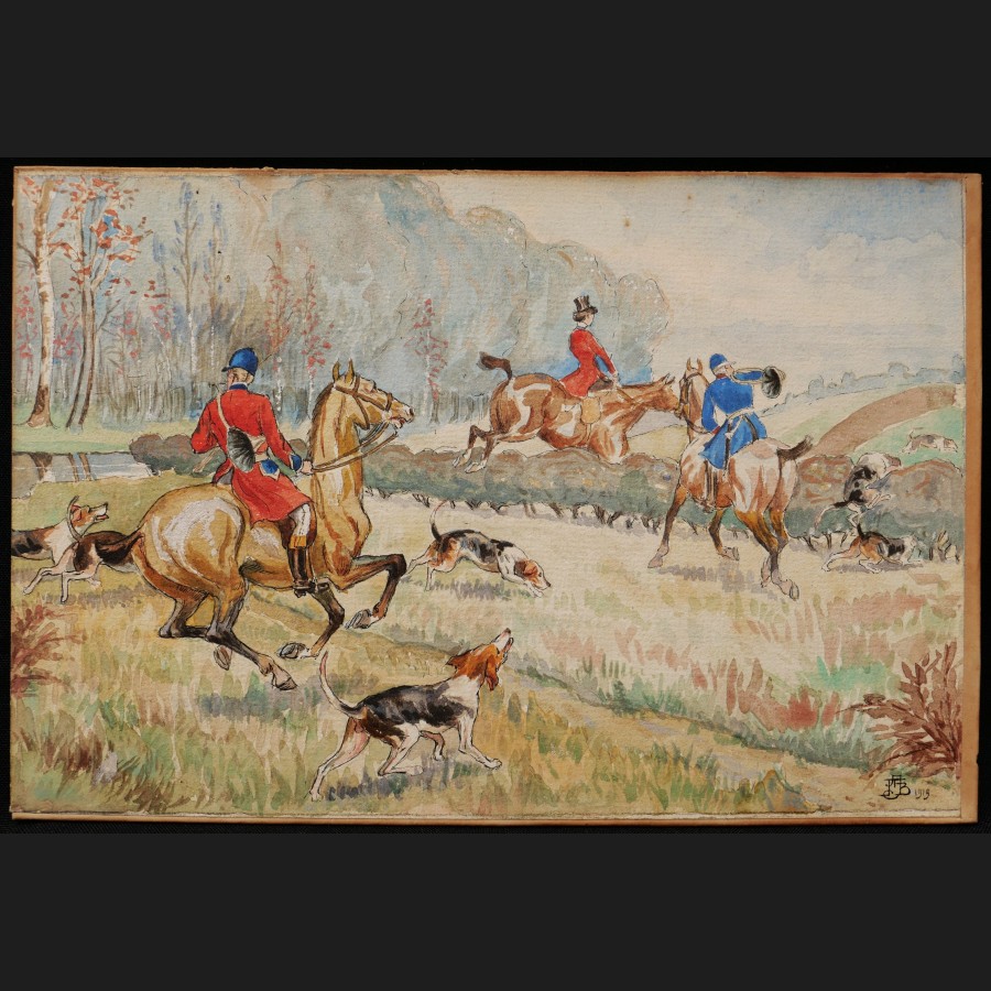 Attribué à Jean Achille Théodore BRAIL, Scènes de chasse à courre, paire d'aquarelles