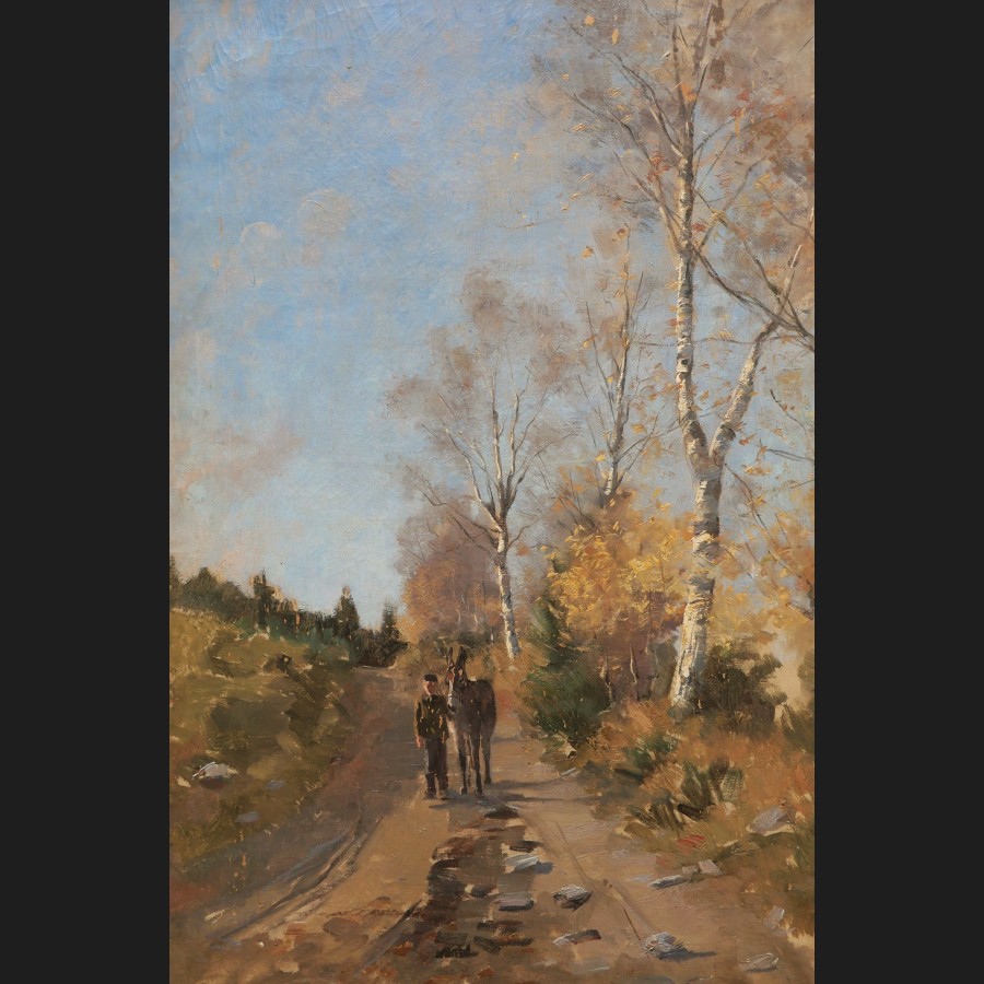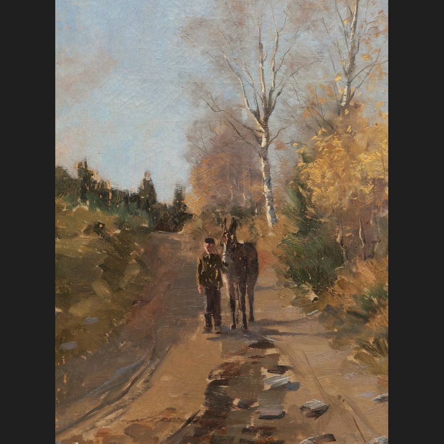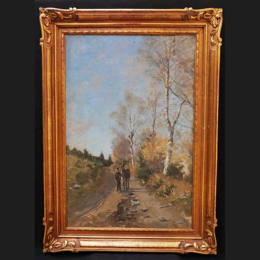 École FRANÇAISE ou BELGE circa 1900-1920, Homme et son âne sur un chemin, tableau