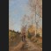 Homme et son âne sur un chemin bordé de bouleaux