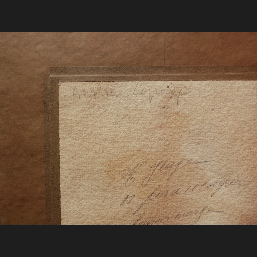 Note : il s'agit dun » étude préparatoire pour le tableau Moissonneurs aiguisant leurs faux (salle de dessin de l'école de la rue Dombasle dans le 15ème arrondissement de Paris ; esquisse au Musée du Petit Palais)