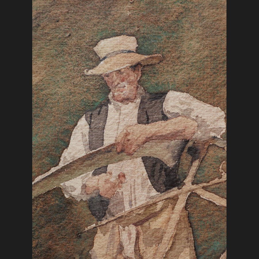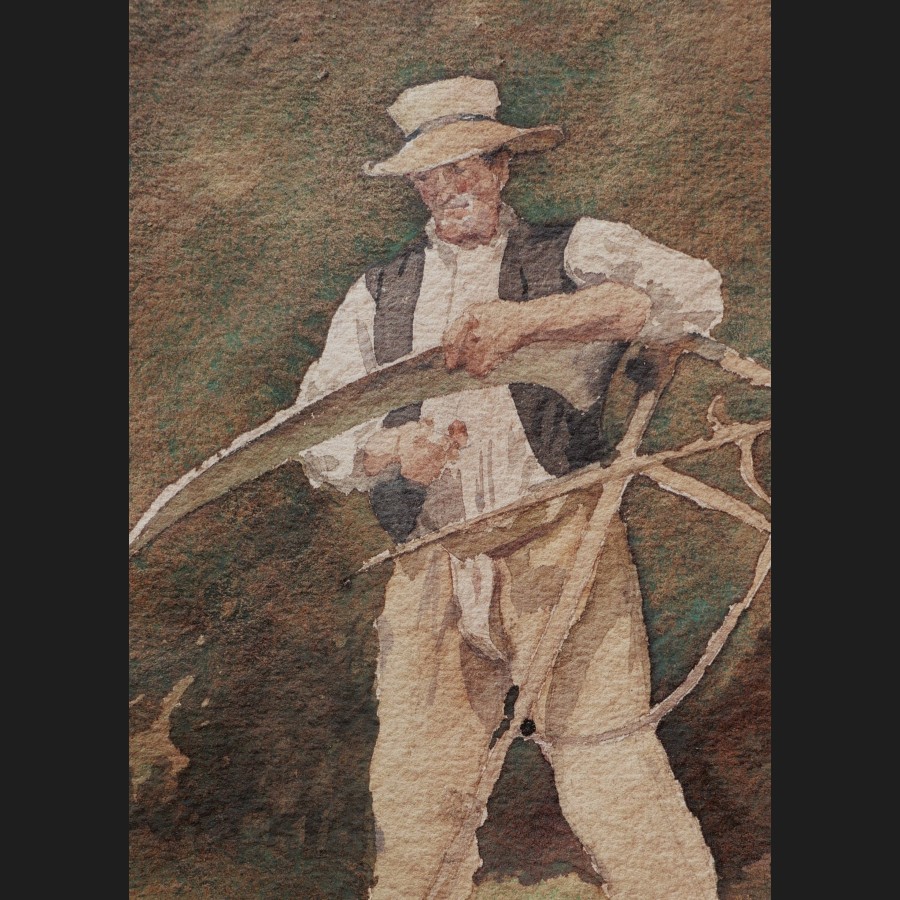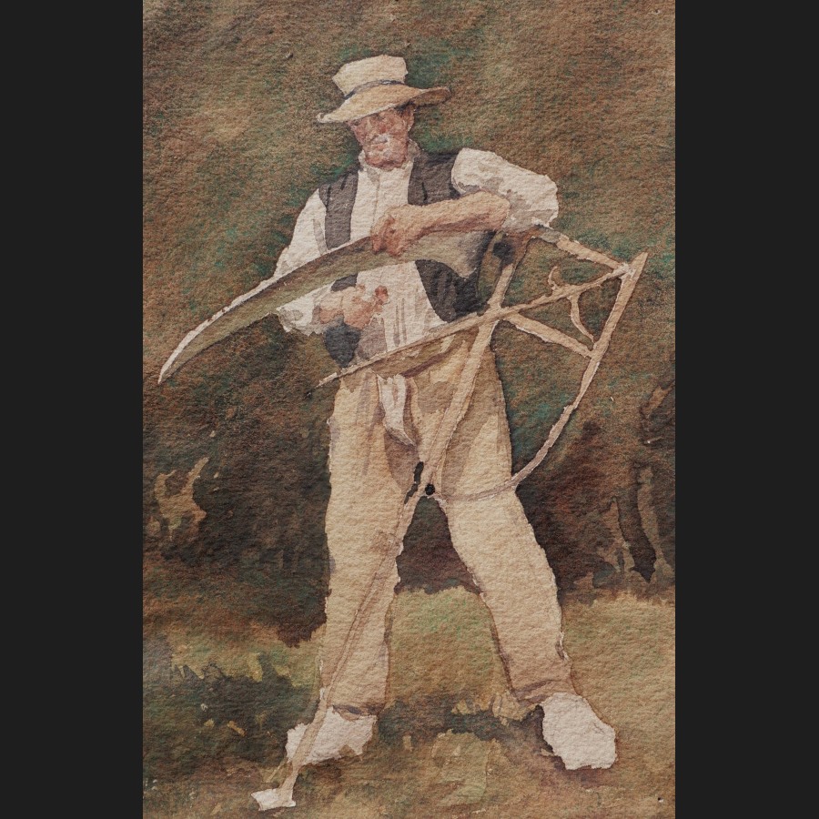 Paul-Albert BAUDOÜIN, Faucheur aiguisant sa faux, aquarelle