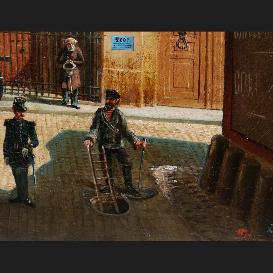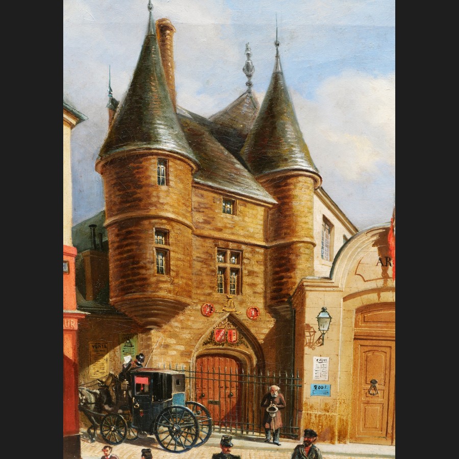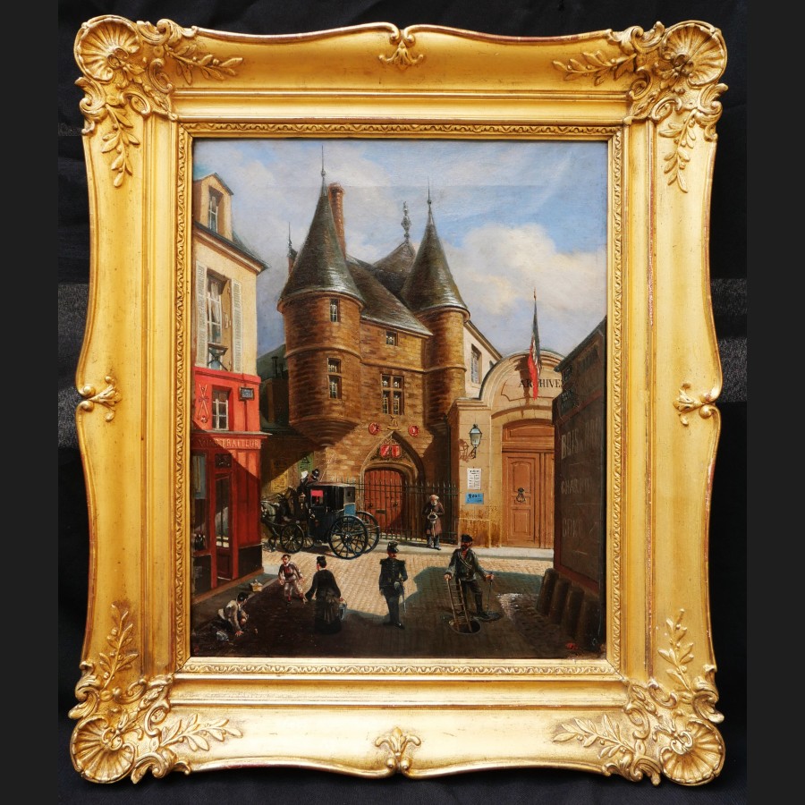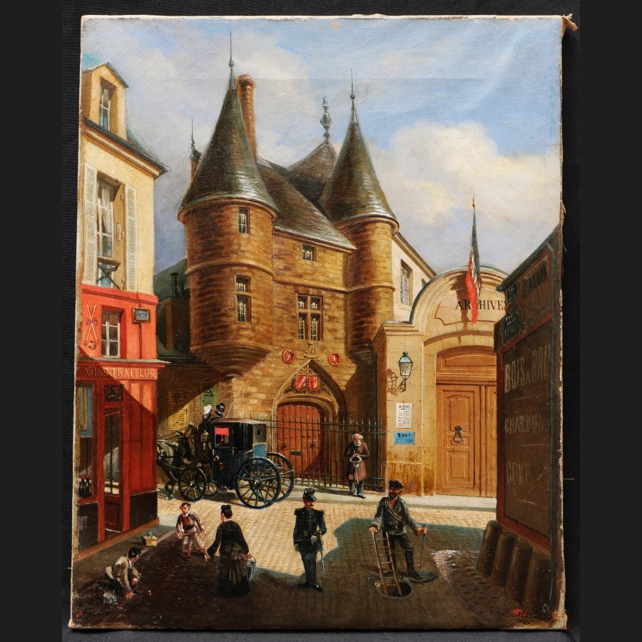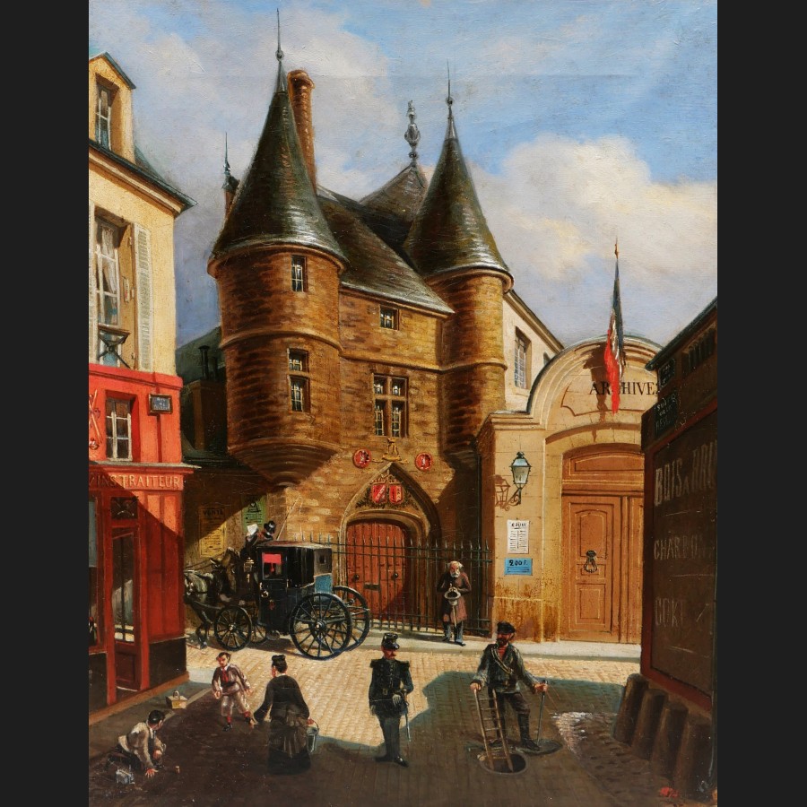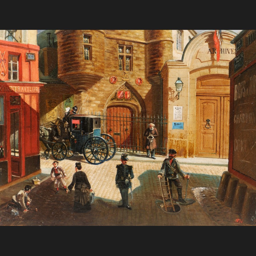 E. GIRSELS ,Vue animée de la rue des Archives, tableau