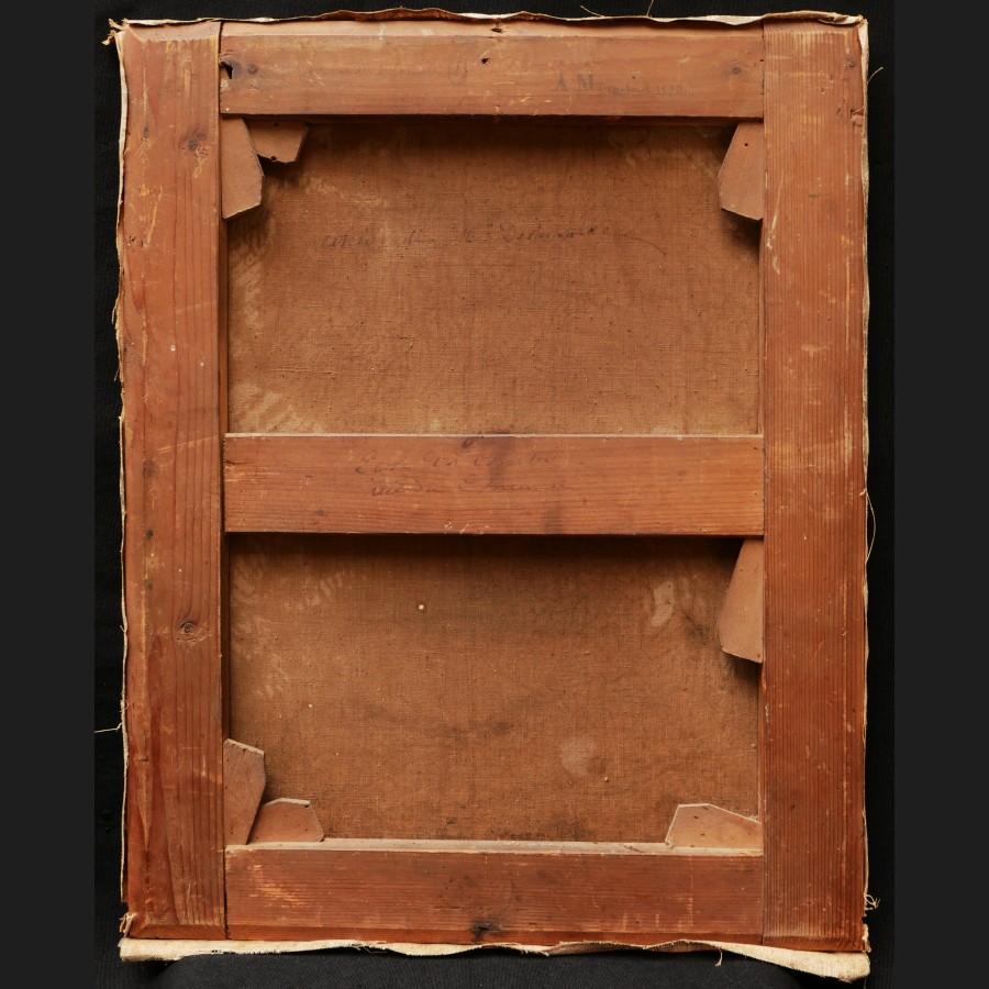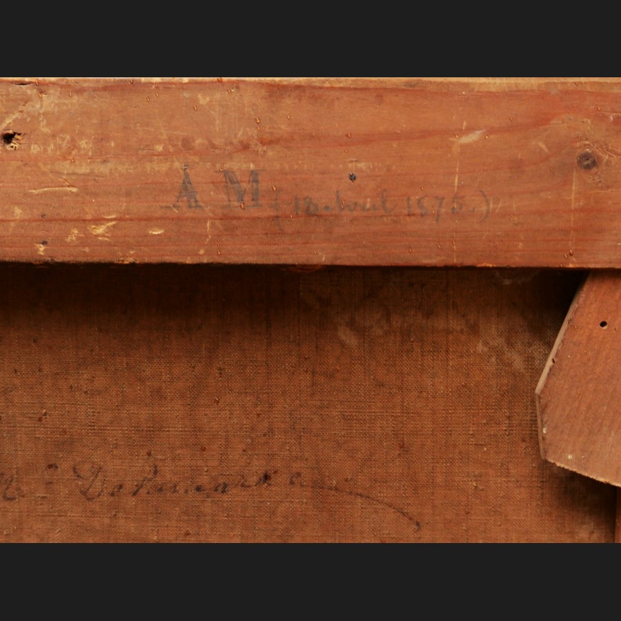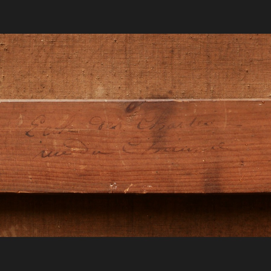Daté 1874 en bas à droite (signature disparue), marque au revers de la toile atelier de Mr Delamarre, marque au revers du châssis Ecole des Chartes / Rue ...