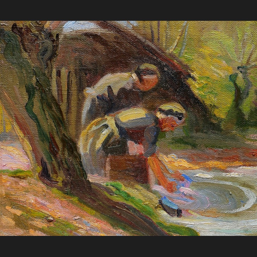 École FRANÇAISE circa 1910 - 1920, Deux lavandières, tableau