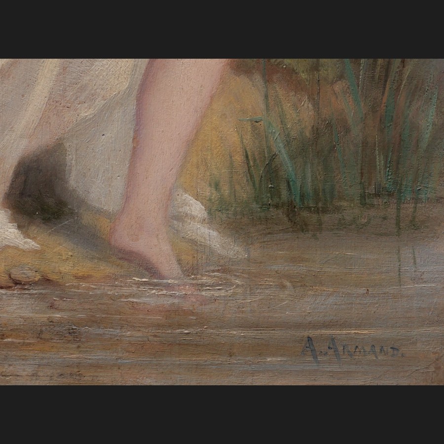A. ARMAND (actif fin XIXème siècle)BaigneuseHuile sur panneau de boisSigné en bas à droite A. ARMAND34 x 24 cm