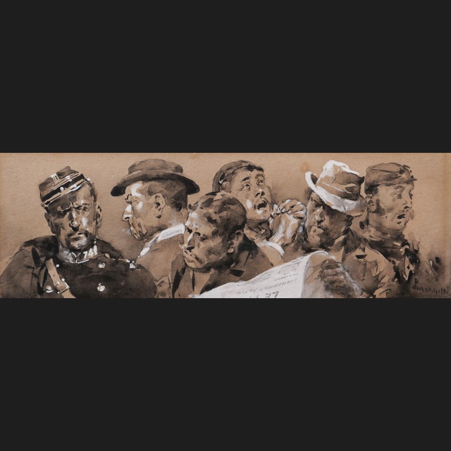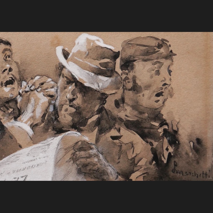 Signé en bas à droite L. marchetti, titré en-dessous de l'image Ceux qui voient en noir