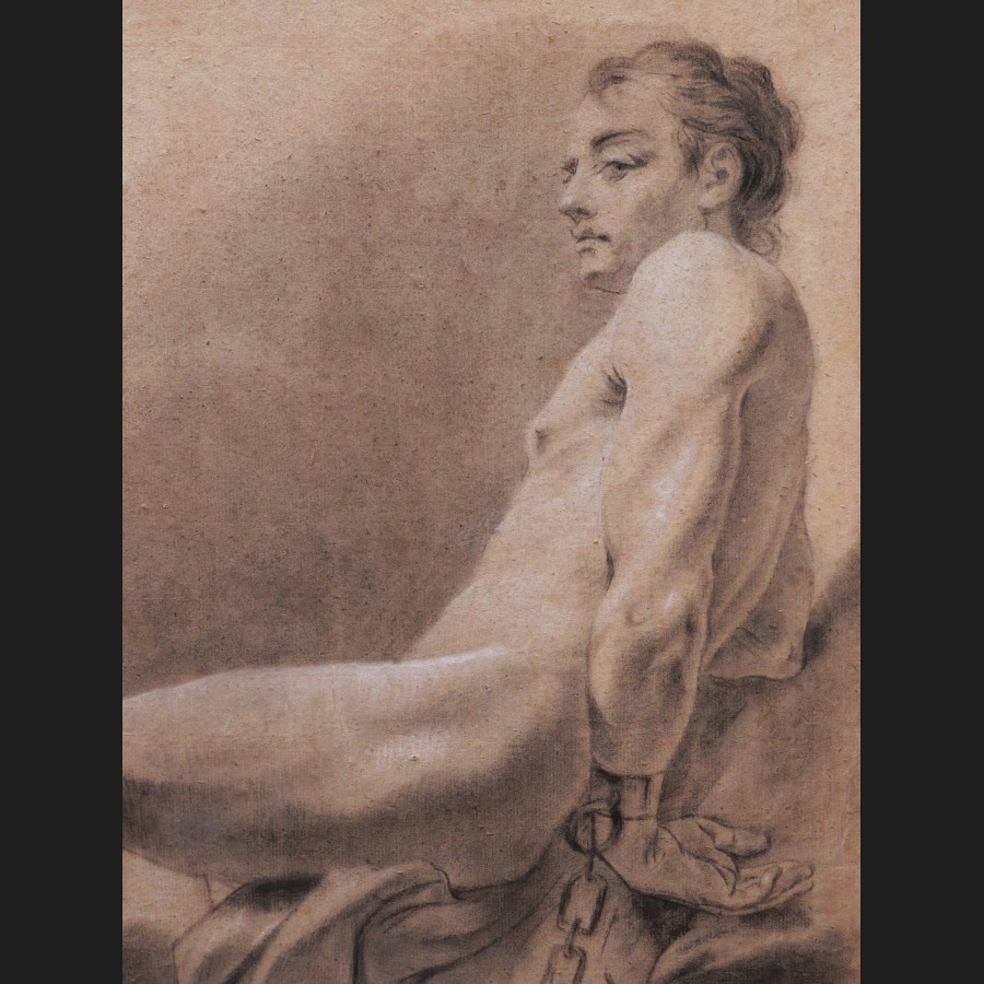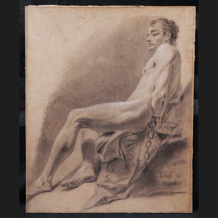Jean-Jacques DELUSSE, Académie d'homme nu enchaîné, dessin