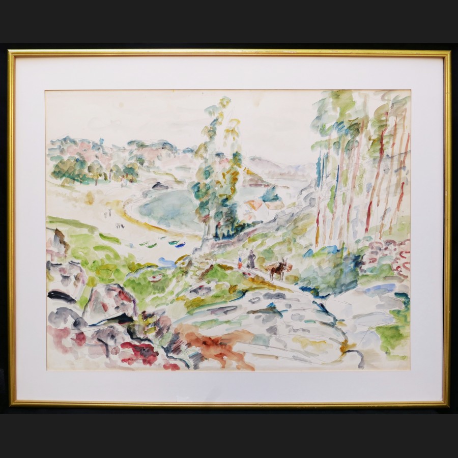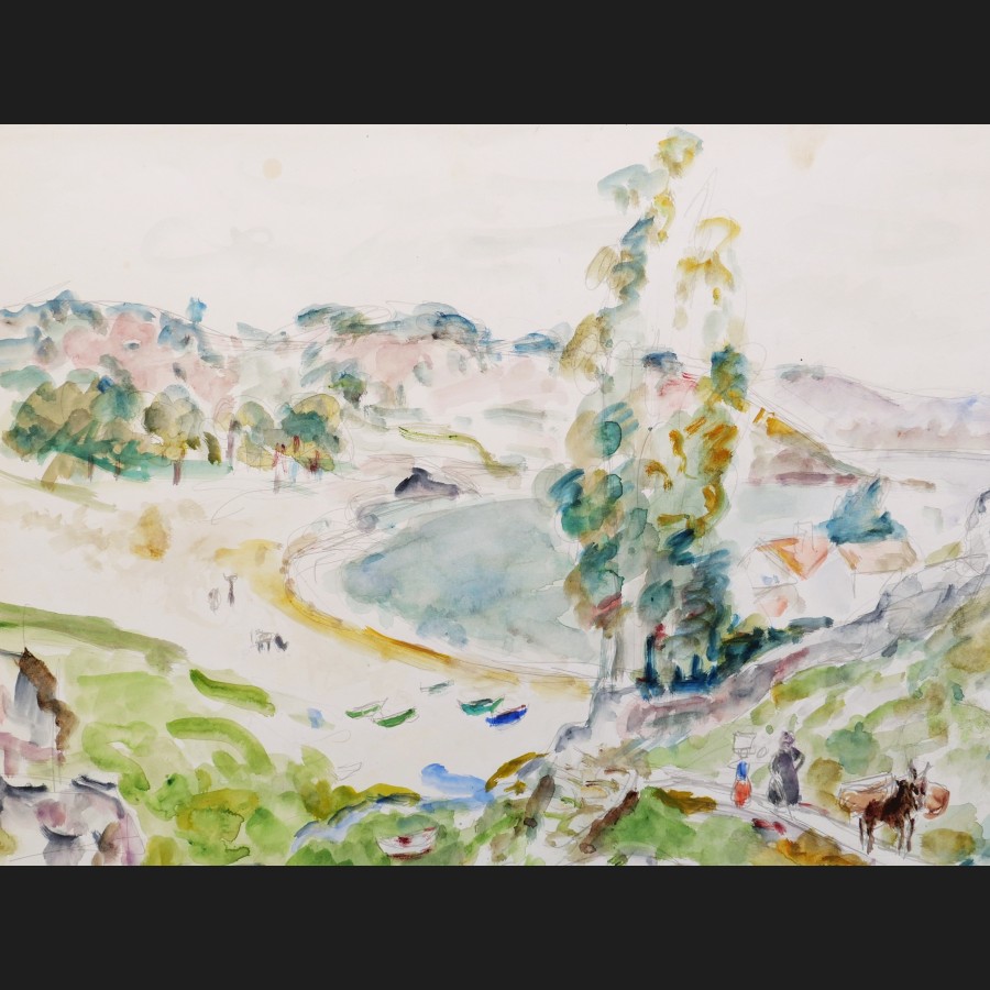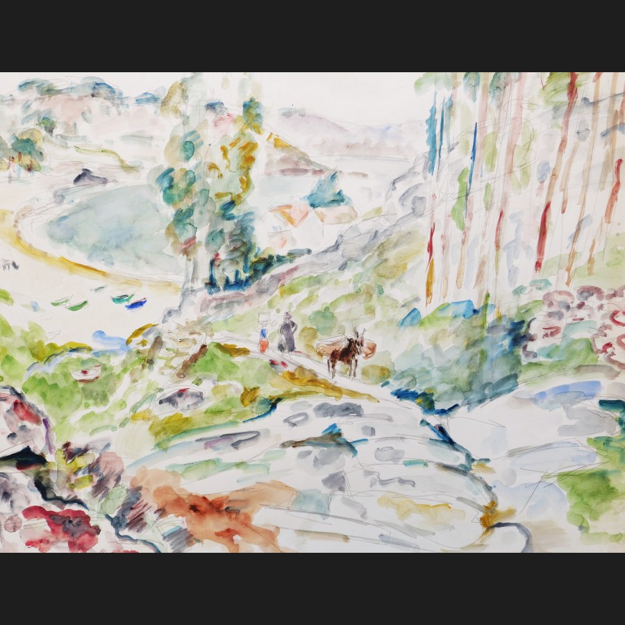 Simon Claude ABRAMOVITCH-VANIER, Paysage de Galice en Espagne, aquarelle