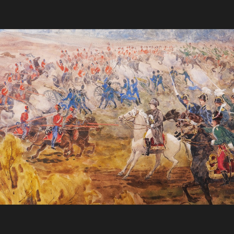 École RUSSE début XXème siècle, Bataille napoléonienne, aquarelle