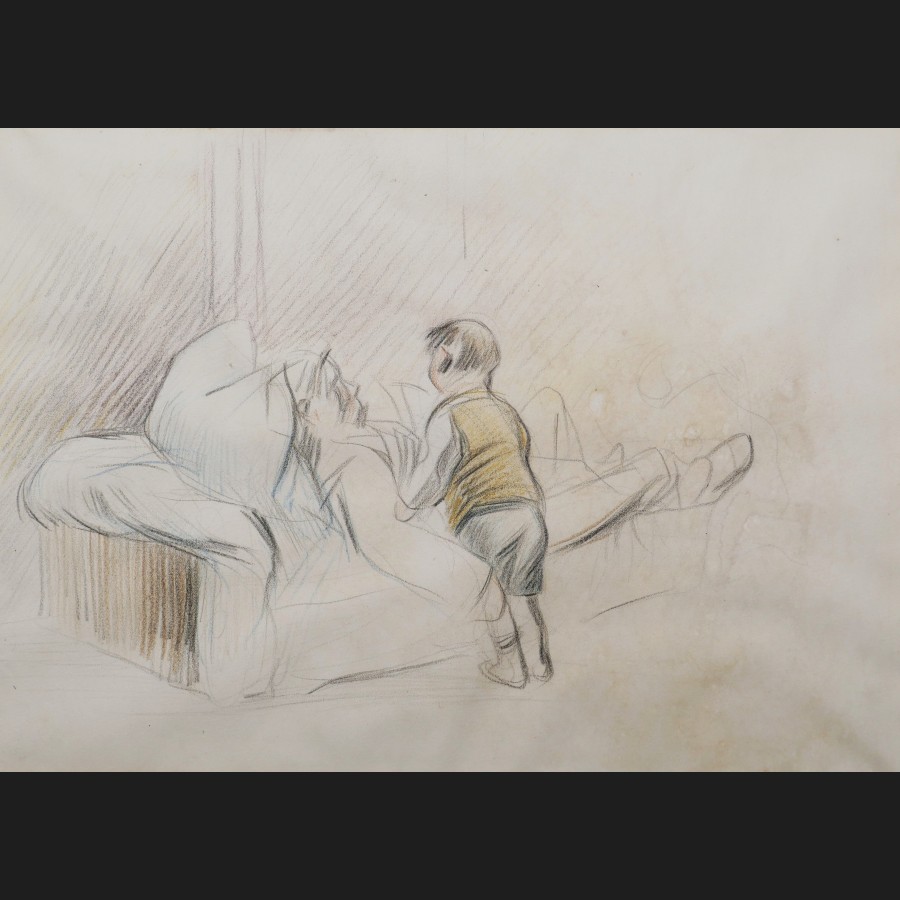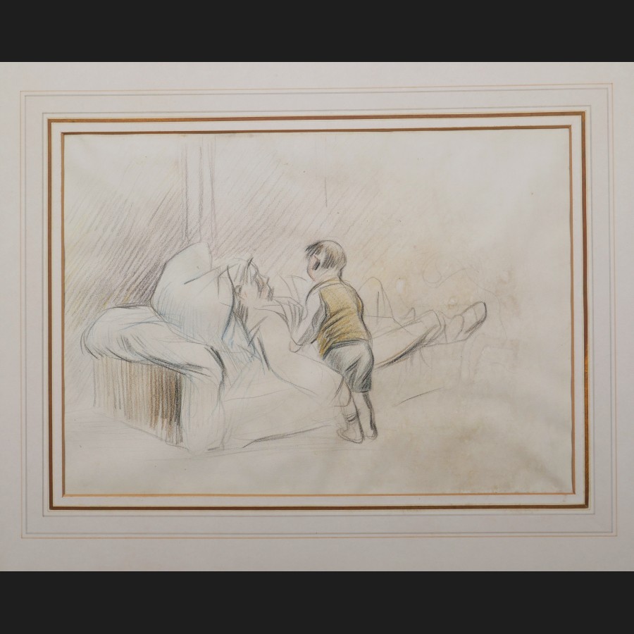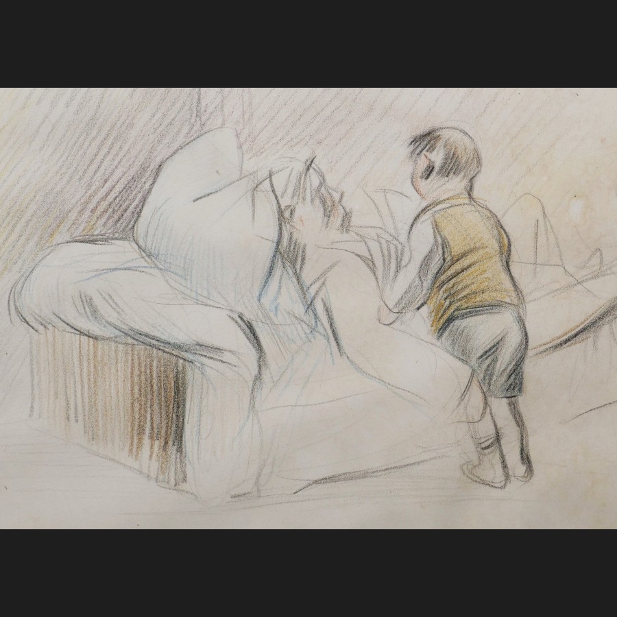 Attribué à Jean-Louis FORAIN, Petit garçon et homme alité, dessin