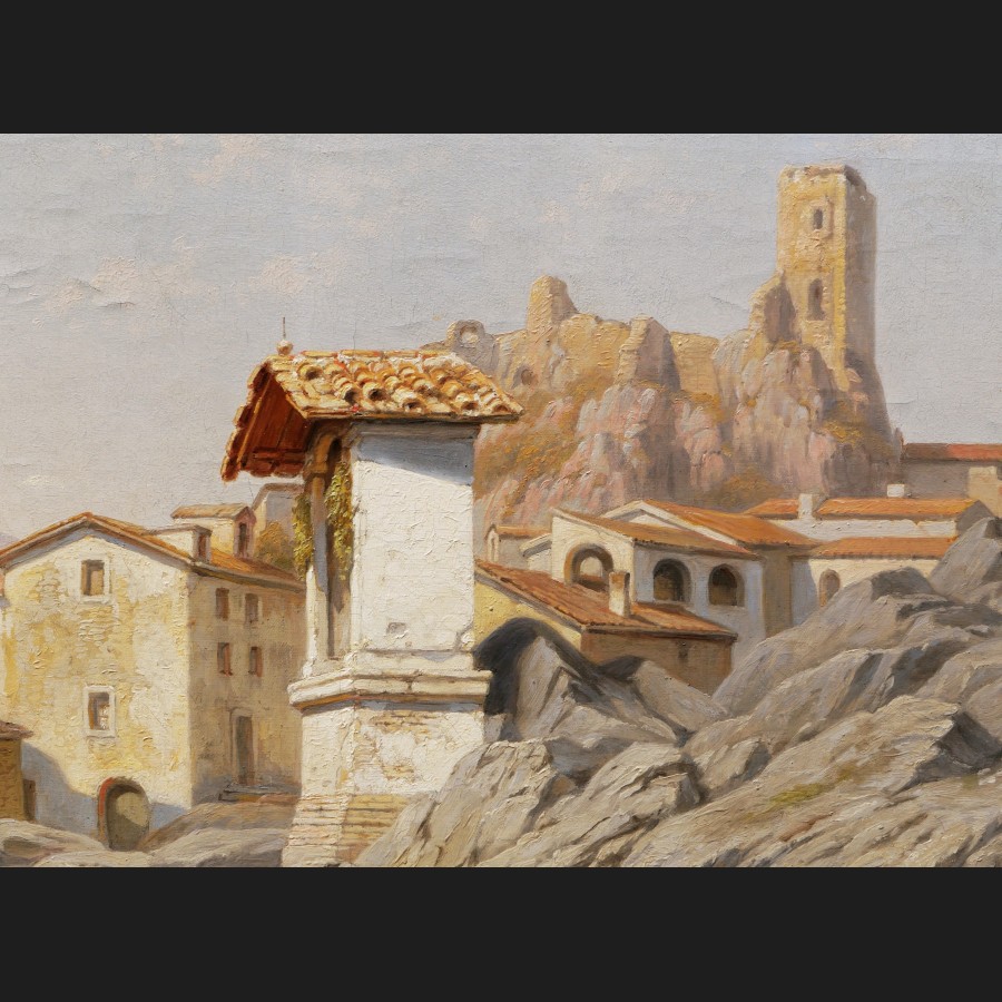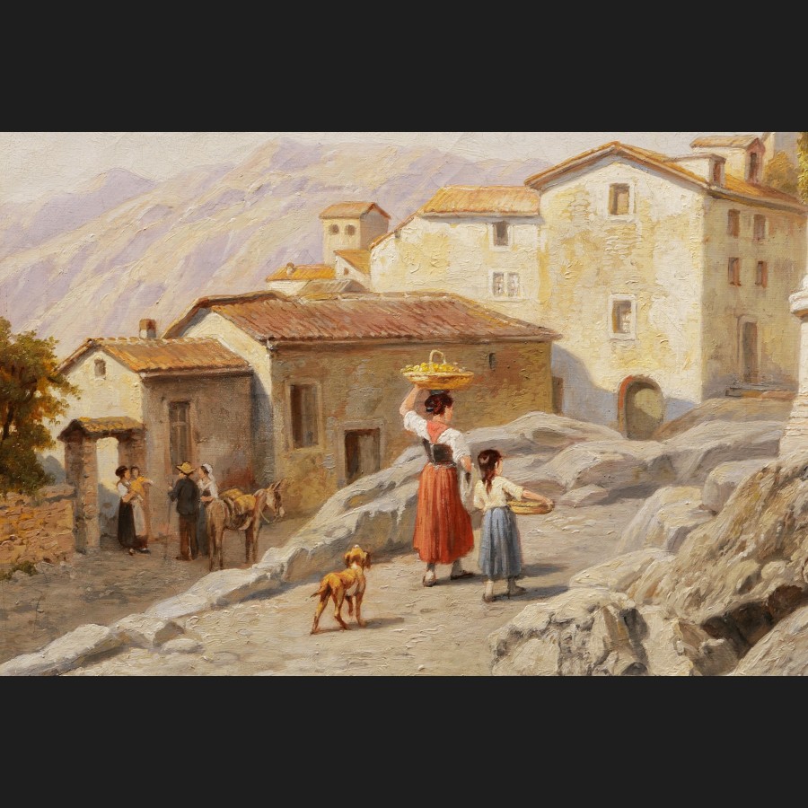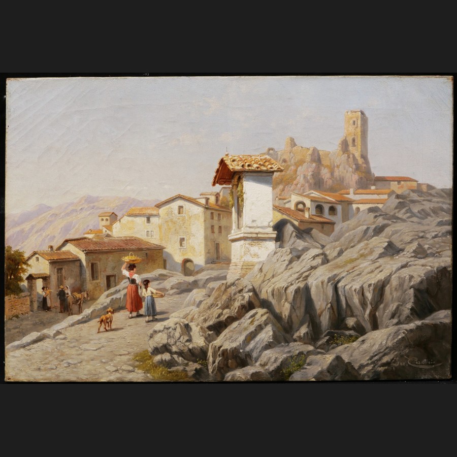 Jacques CARABAIN, Vue animée à Olevano près de Rome, tableau